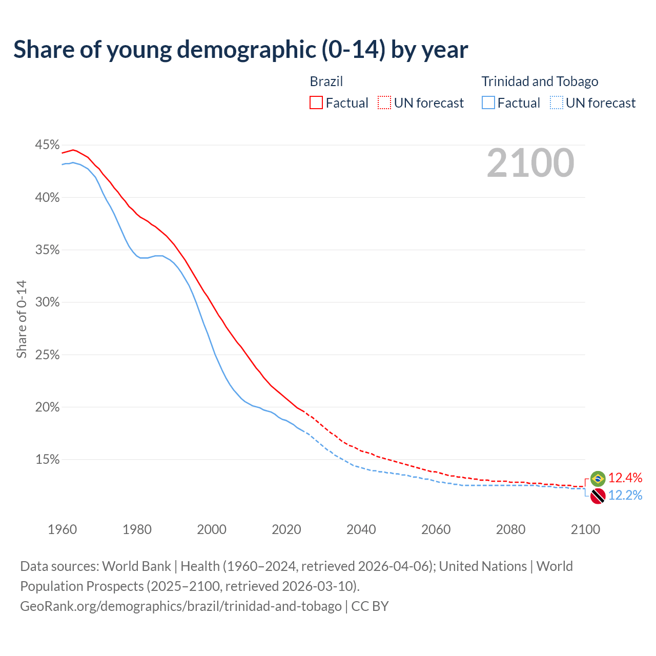 - The share of young demographic (0-15 years old) in Brazil is 19.7% vs 17.8% in Trinidad and Tobago.