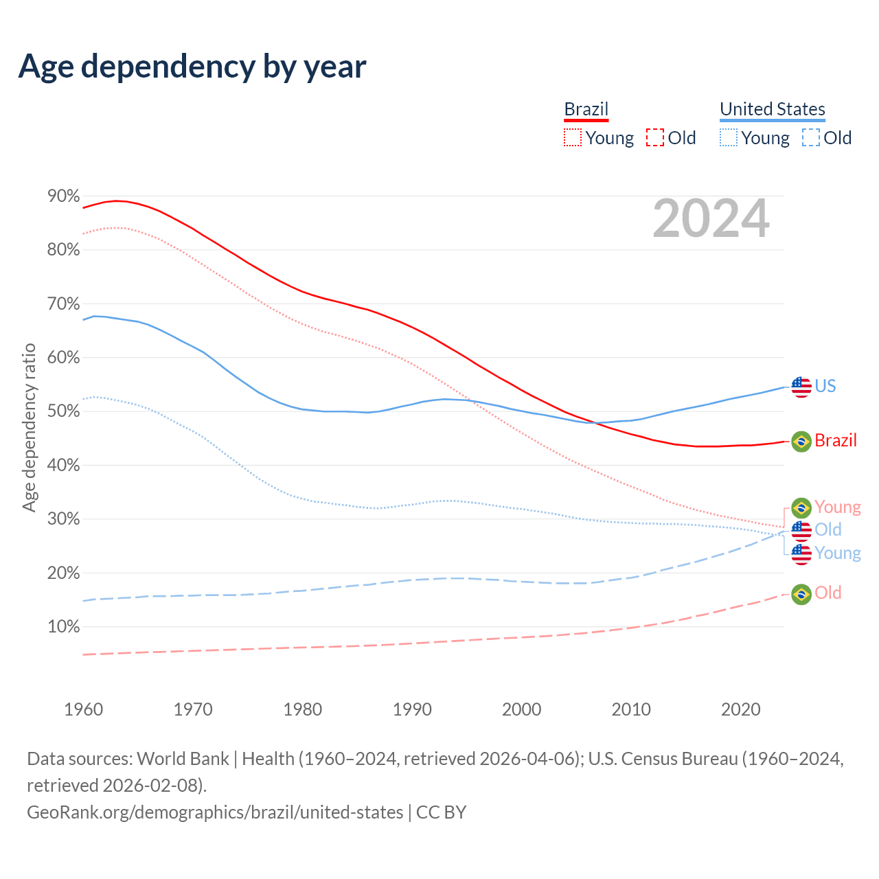 - The total fertility rate is 1.62 in Brazil compared to 1.62 in the United States.