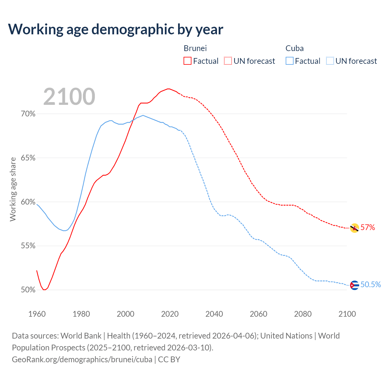 - Brunei has 340K working age adults (aged 15-64) vs 7.42M in Cuba.