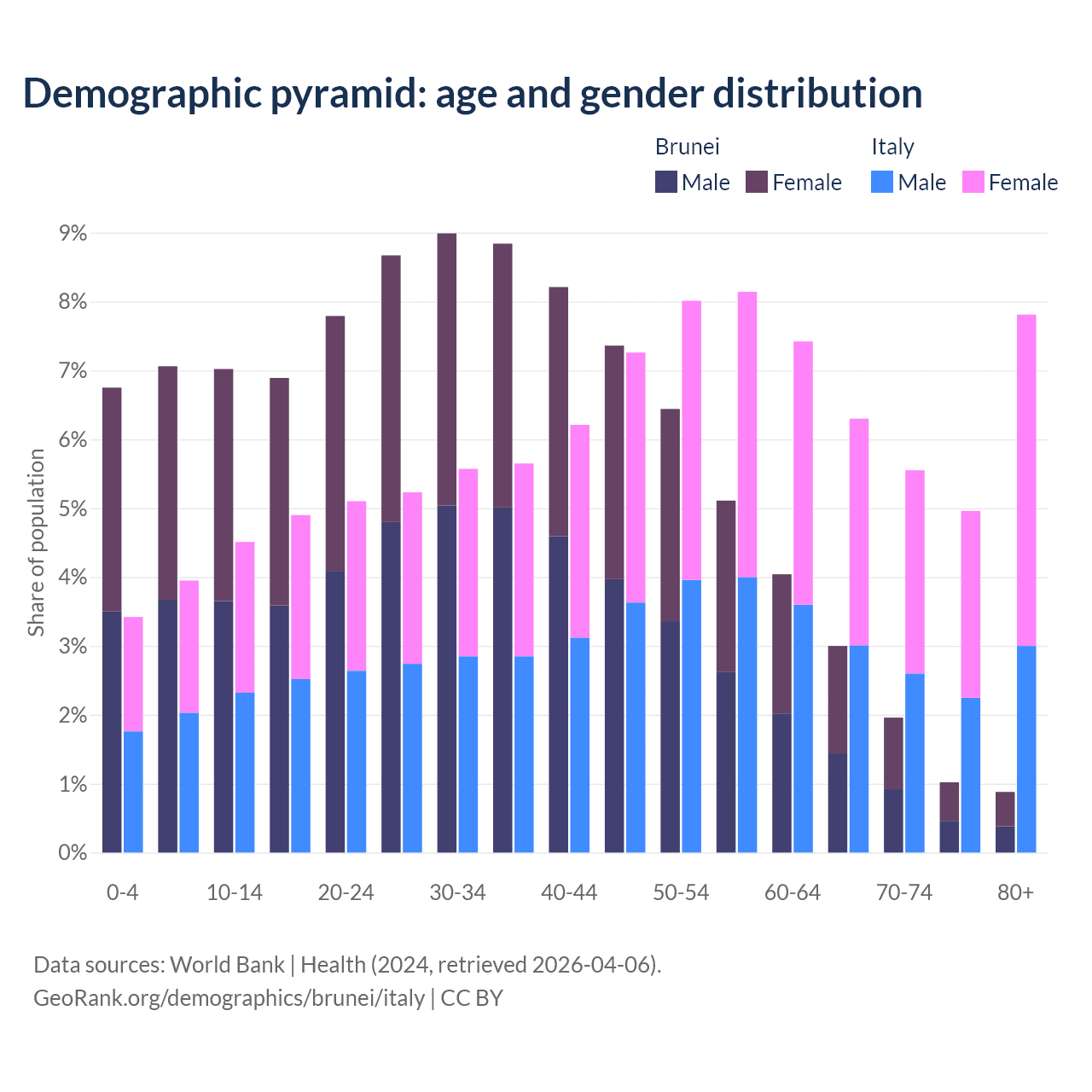 Demographics of Brunei compared to Italy: