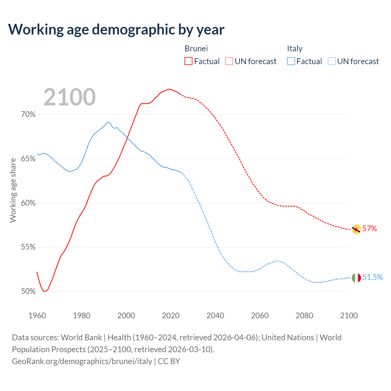 - Brunei has 340K working age adults (aged 15-64) vs 37.2M in Italy.