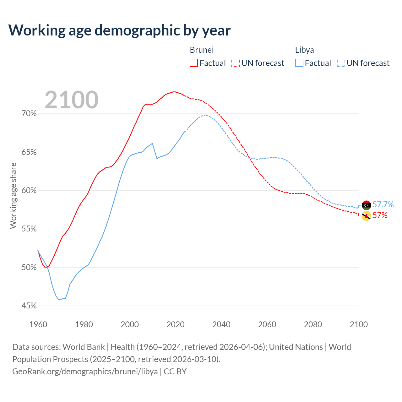 - Brunei has 340K working age adults (aged 15-64) vs 5.11M in Libya.