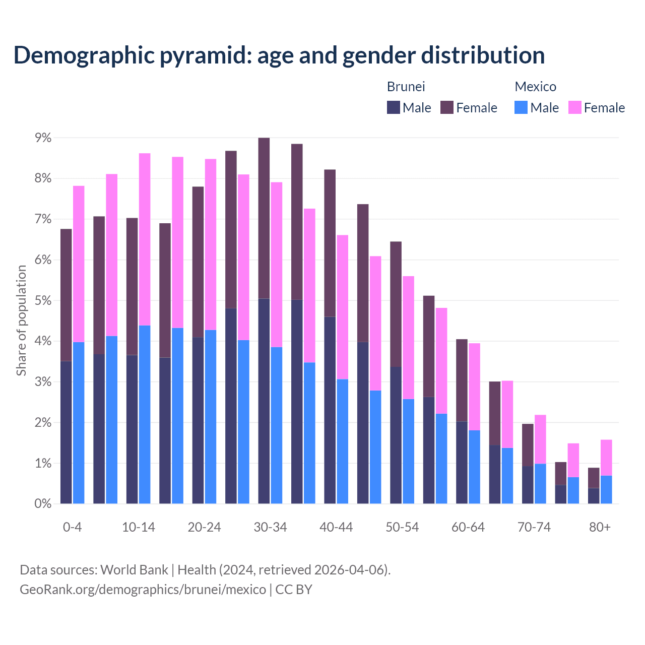 Demographics of Brunei compared to Mexico: