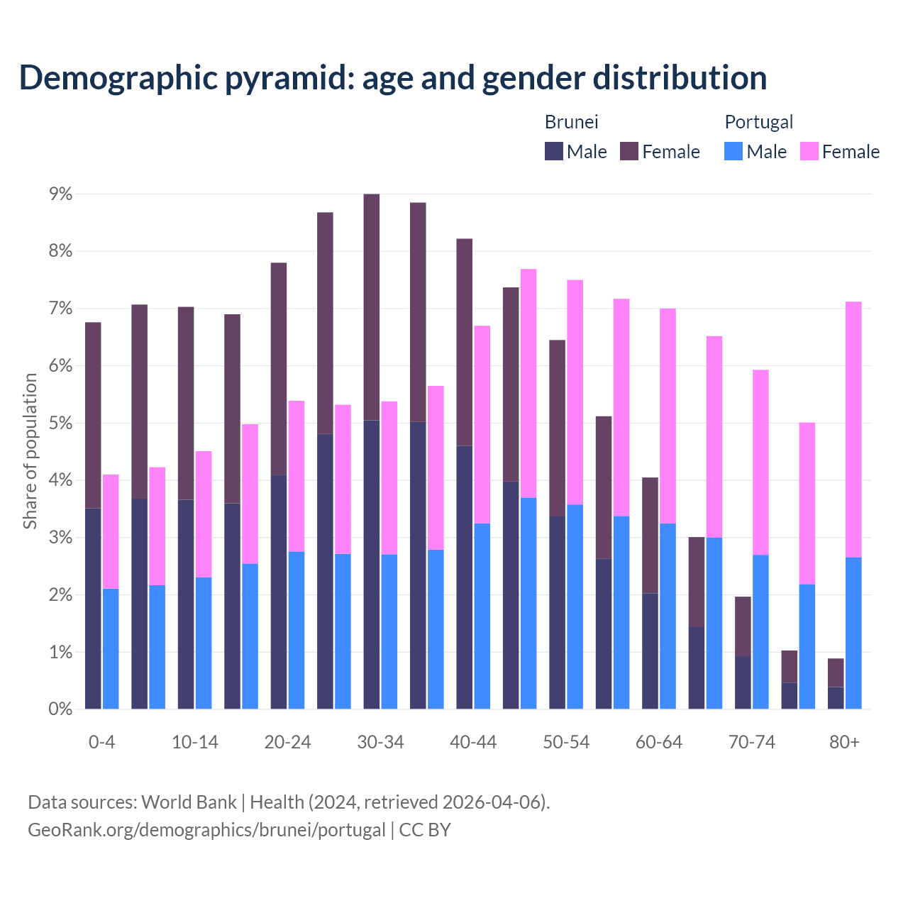 Demographics of Brunei compared to Portugal: