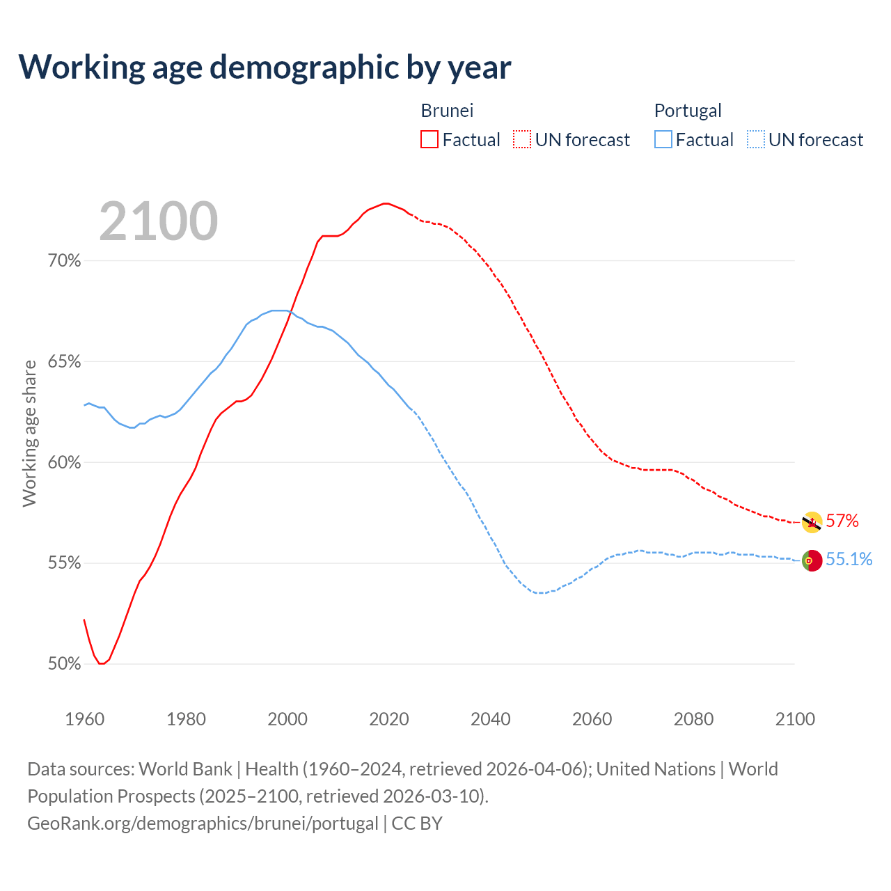 - Brunei has 340K working age adults (aged 15-64) vs 6.68M in Portugal.