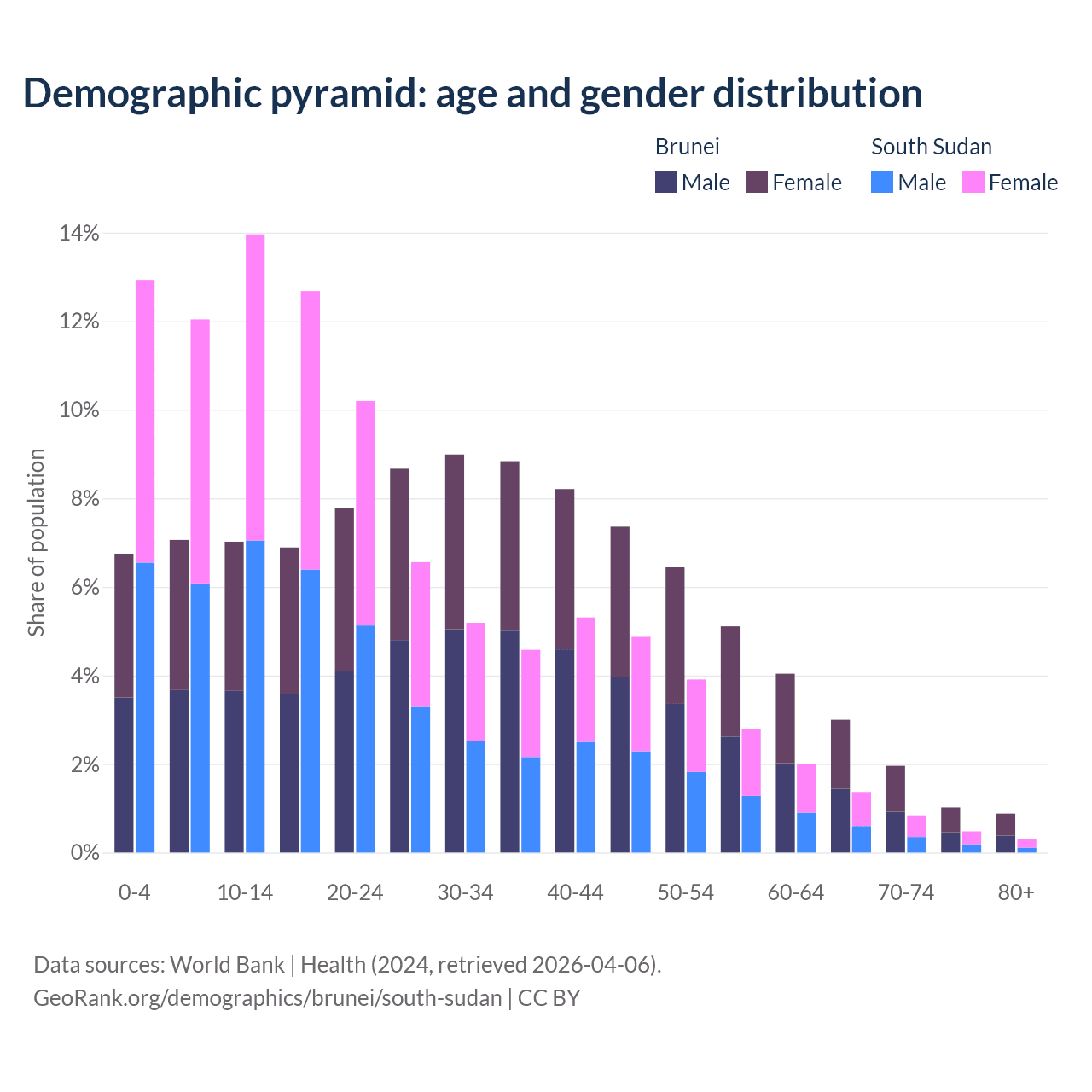 Demographics of Brunei compared to South Sudan: