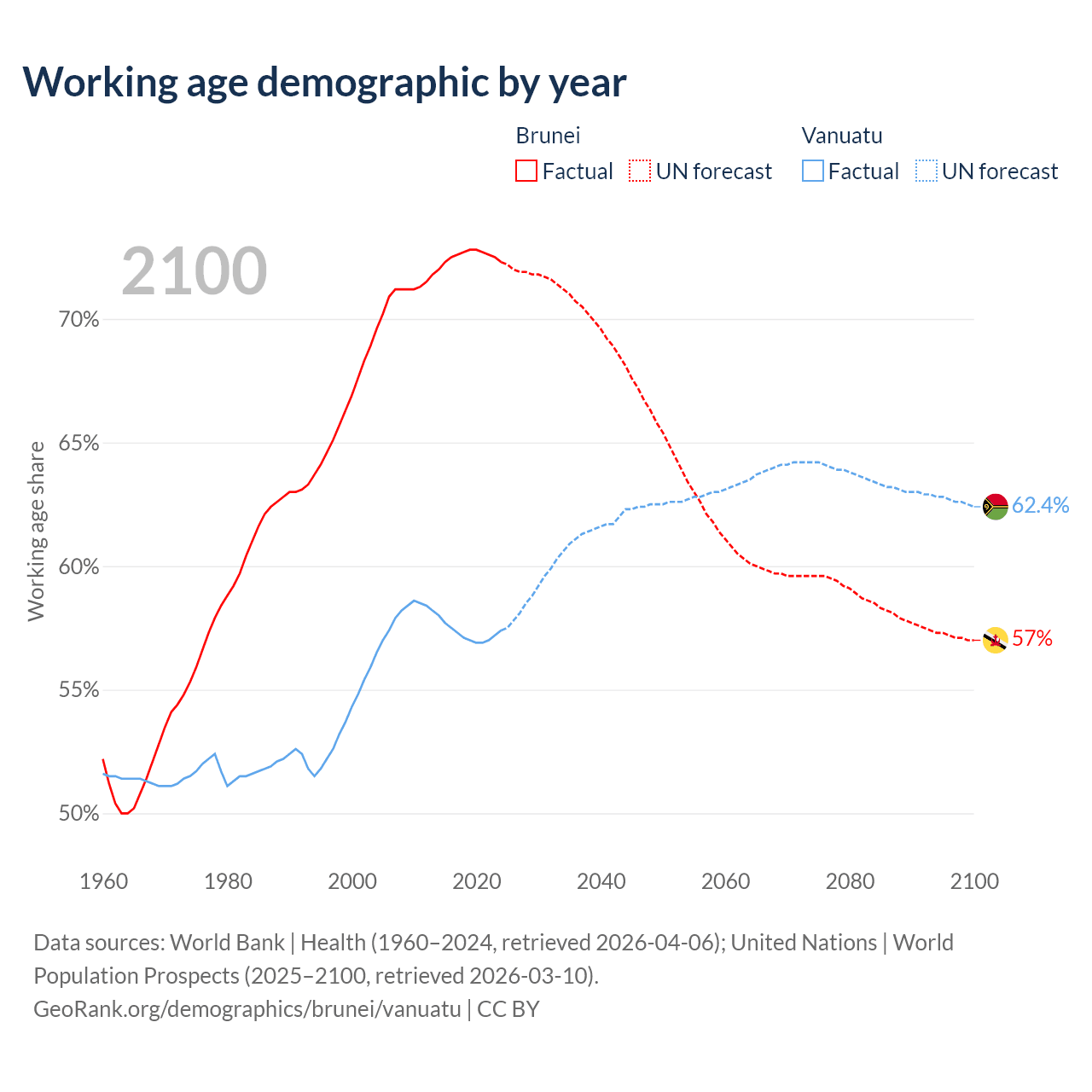 - Brunei has 340K working age adults (aged 15-64) vs 198K in Vanuatu.