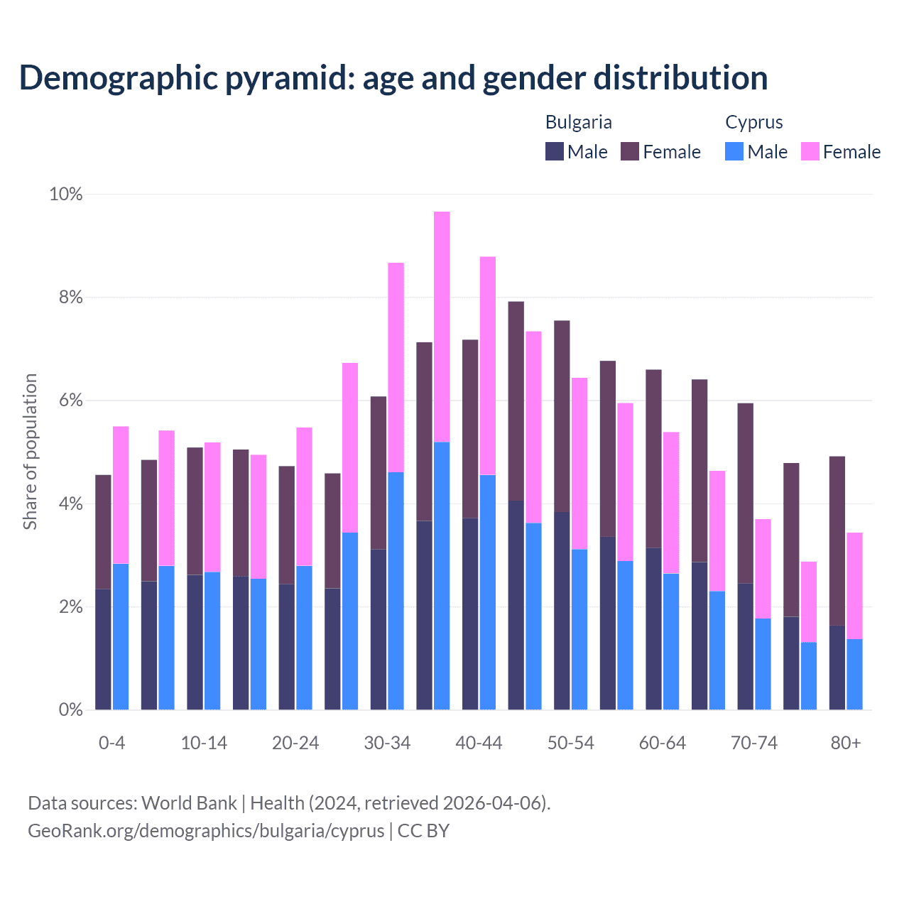 Demographics of Bulgaria compared to Cyprus: