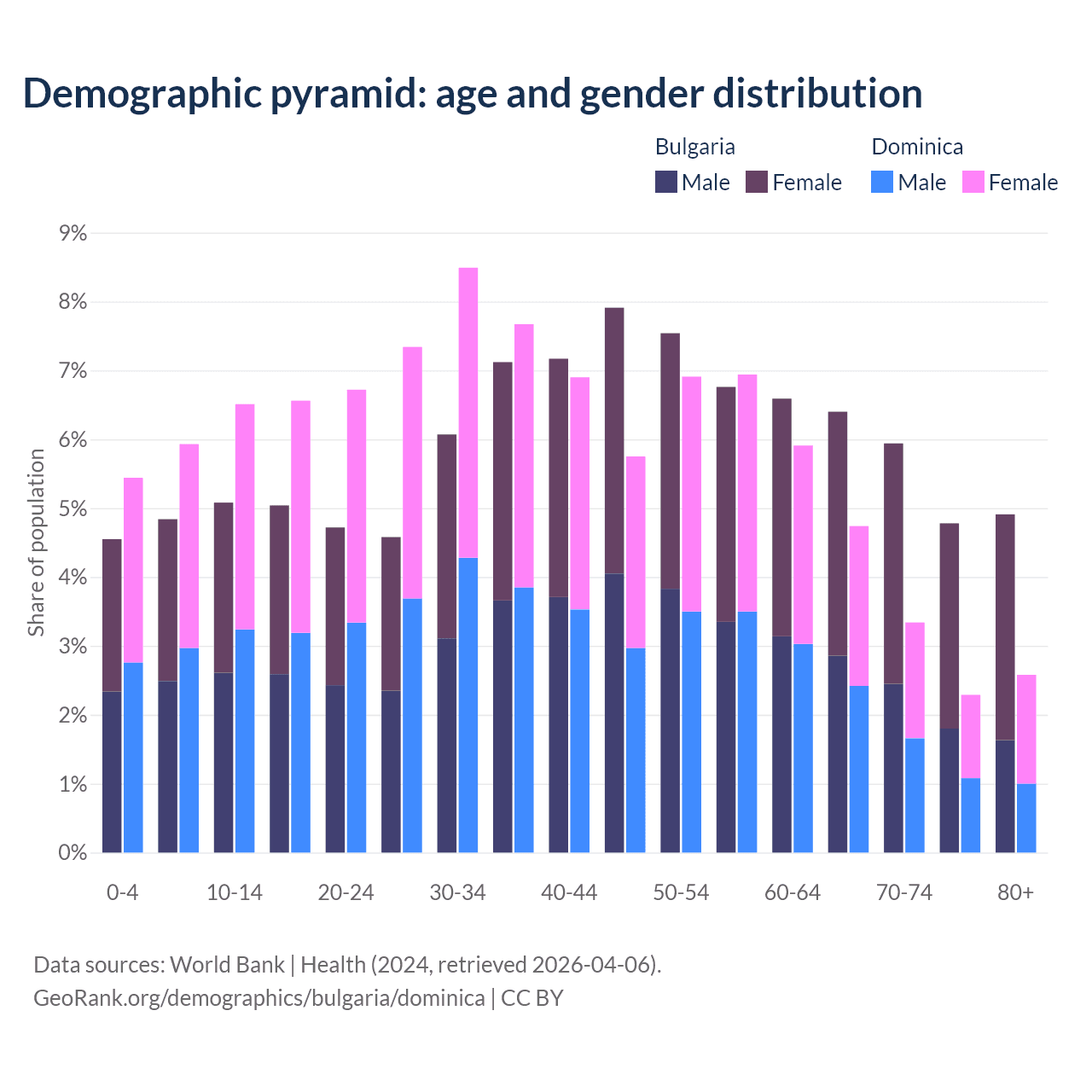 Demographics of Bulgaria compared to Dominica: