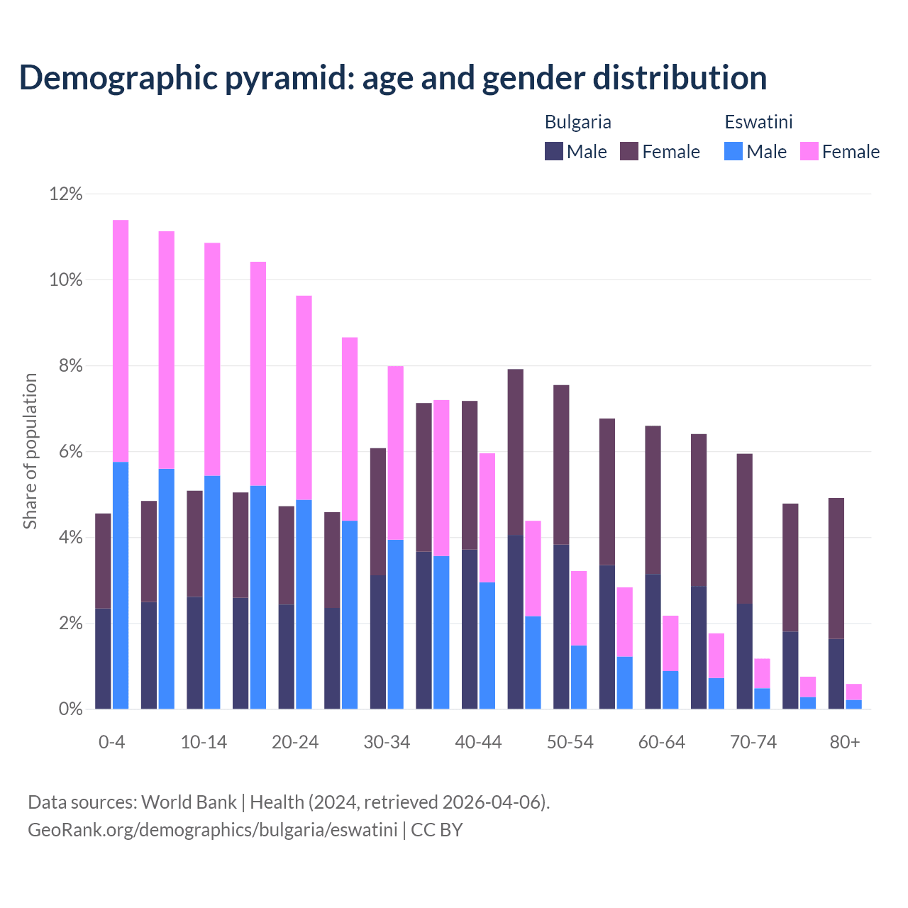 Demographics of Bulgaria compared to Eswatini: