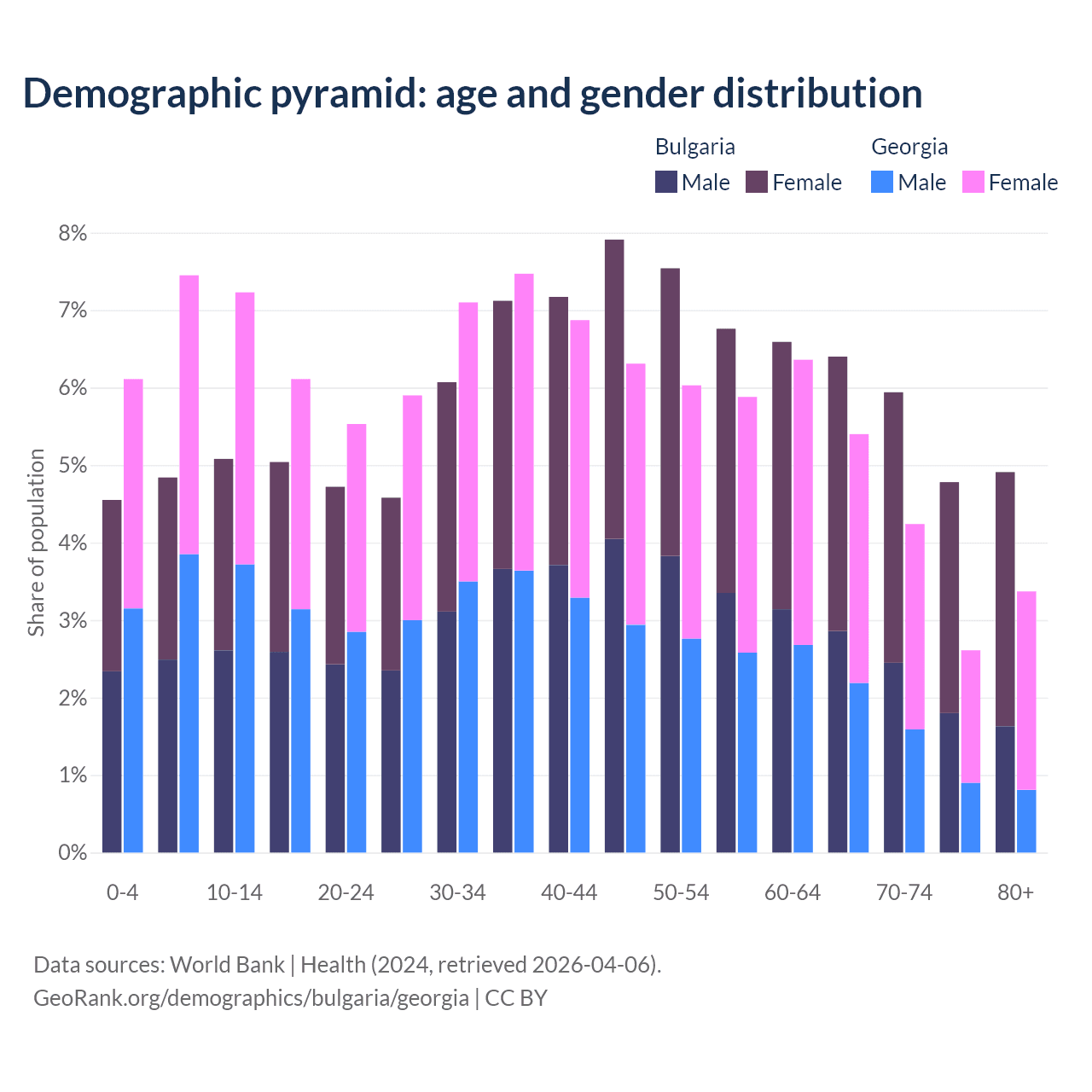 Demographics of Bulgaria compared to Georgia: