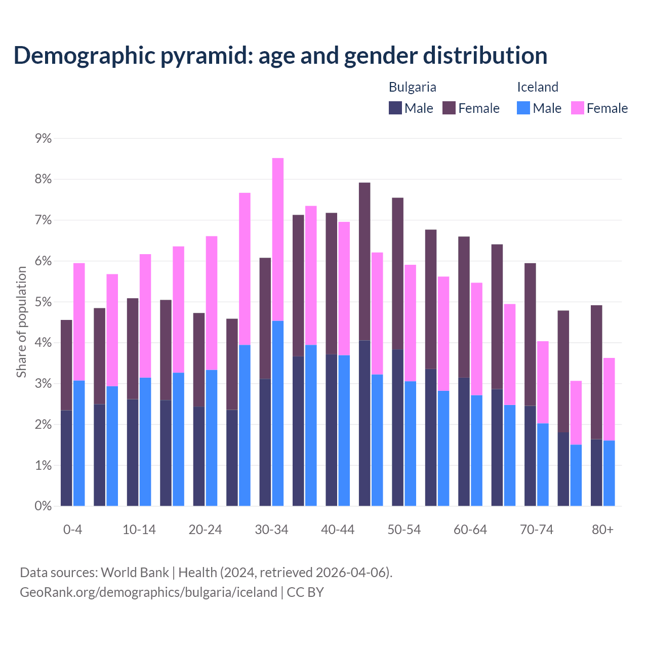 Demographics of Bulgaria compared to Iceland: