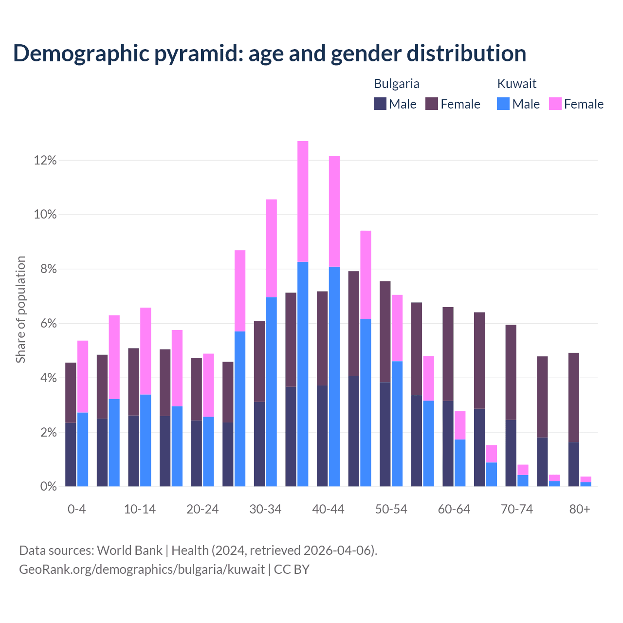 Demographics of Bulgaria compared to Kuwait: