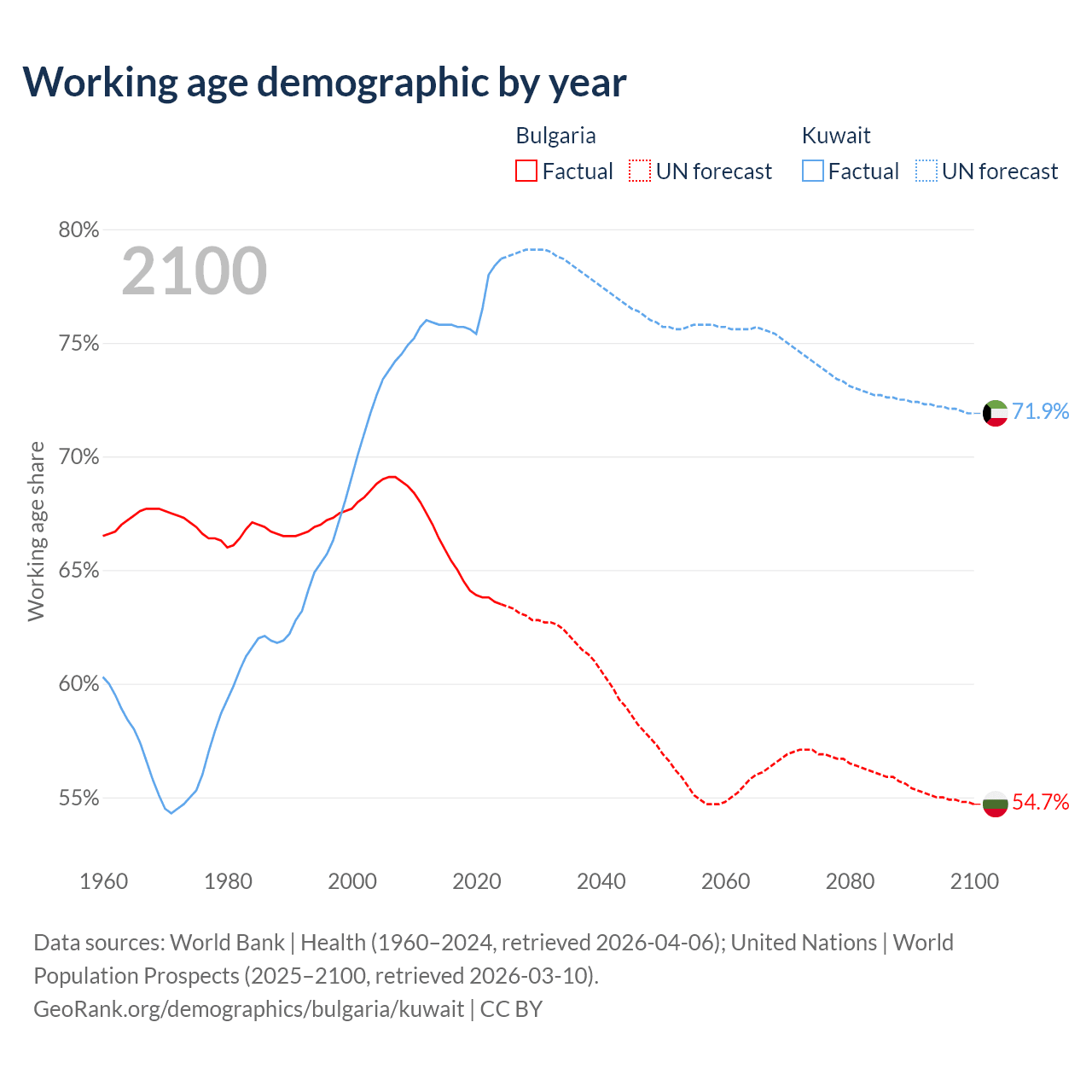 - Bulgaria has 4.04M working age adults (aged 15-64) vs 4.01M in Kuwait.