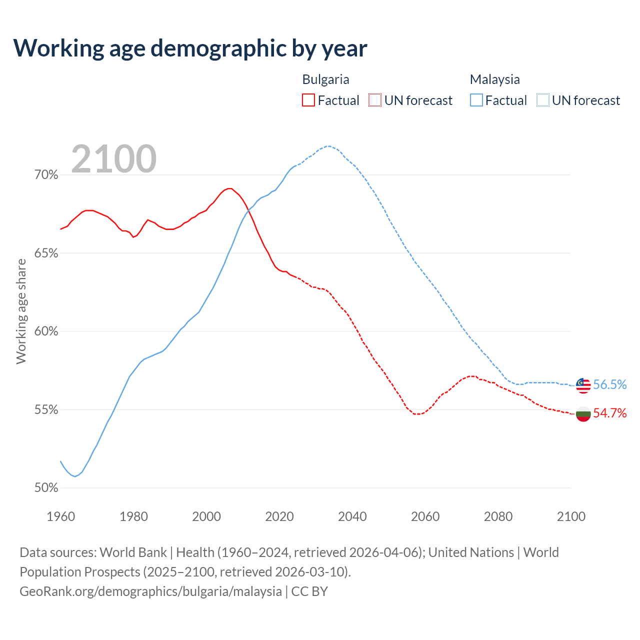 - Bulgaria has 4.04M working age adults (aged 15-64) vs 25.7M in Malaysia.