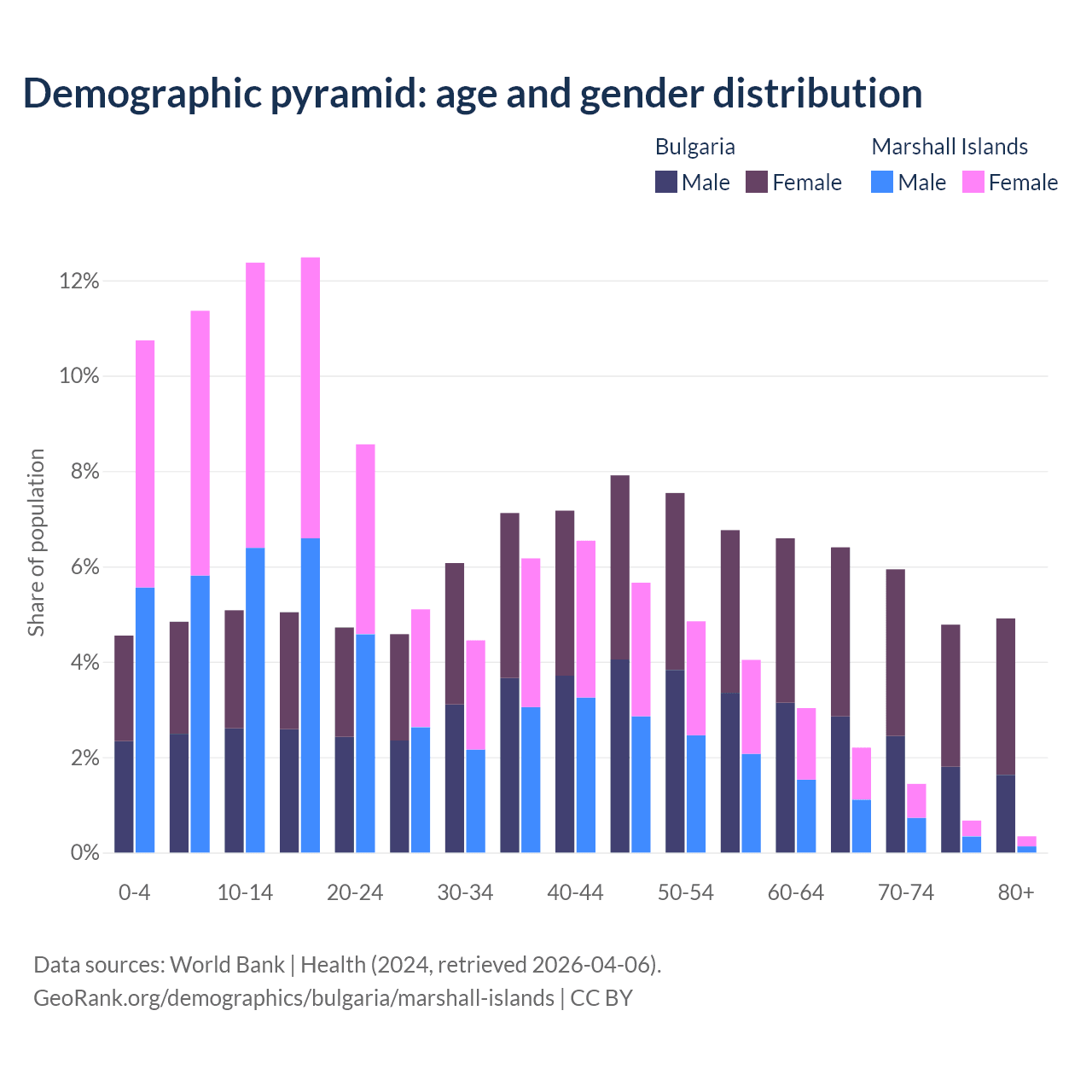 Demographics of Bulgaria compared to the Marshall Islands: