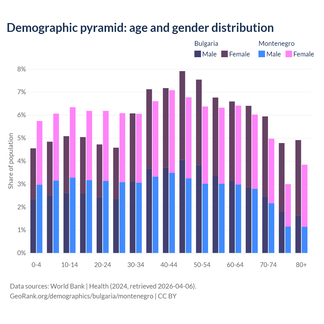 Demographics of Bulgaria compared to Montenegro: