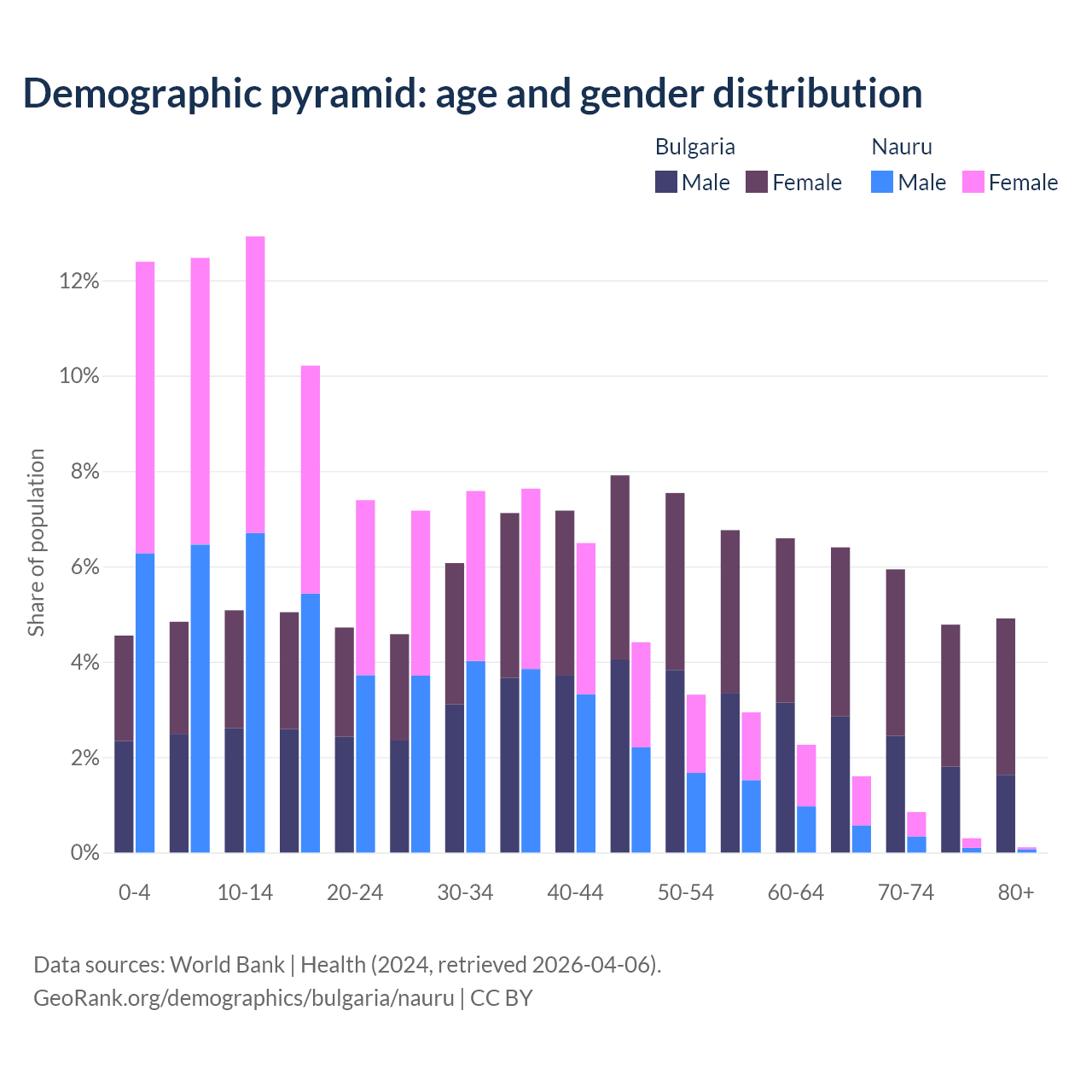 Demographics of Bulgaria compared to Nauru: