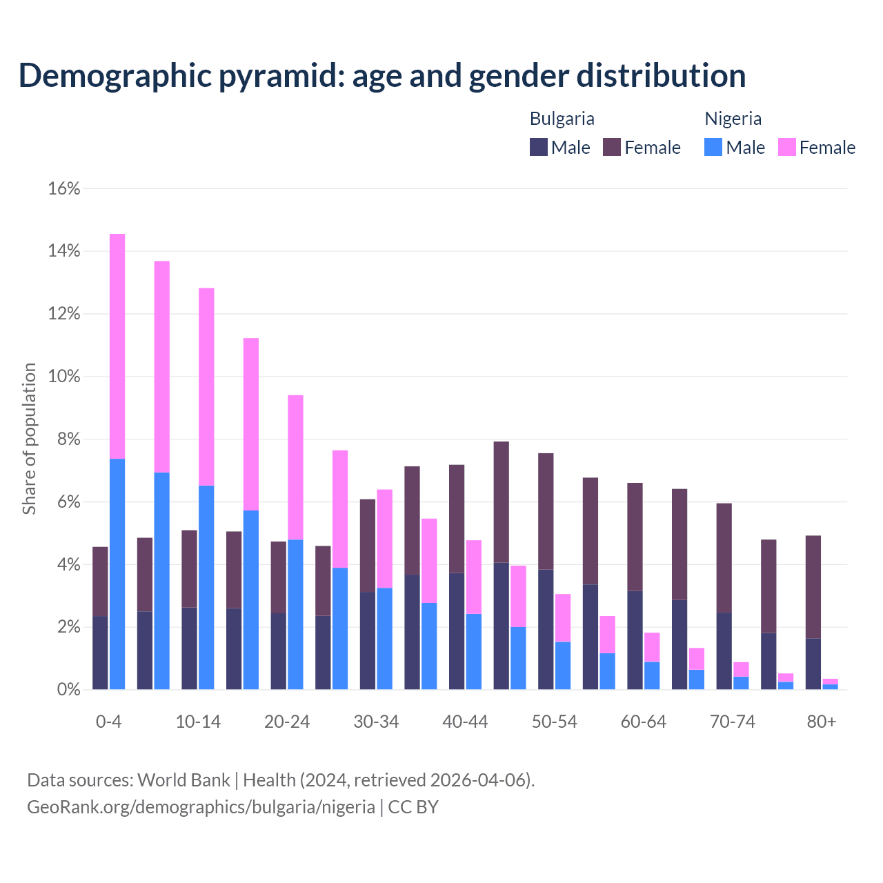 Demographics of Bulgaria compared to Nigeria:
