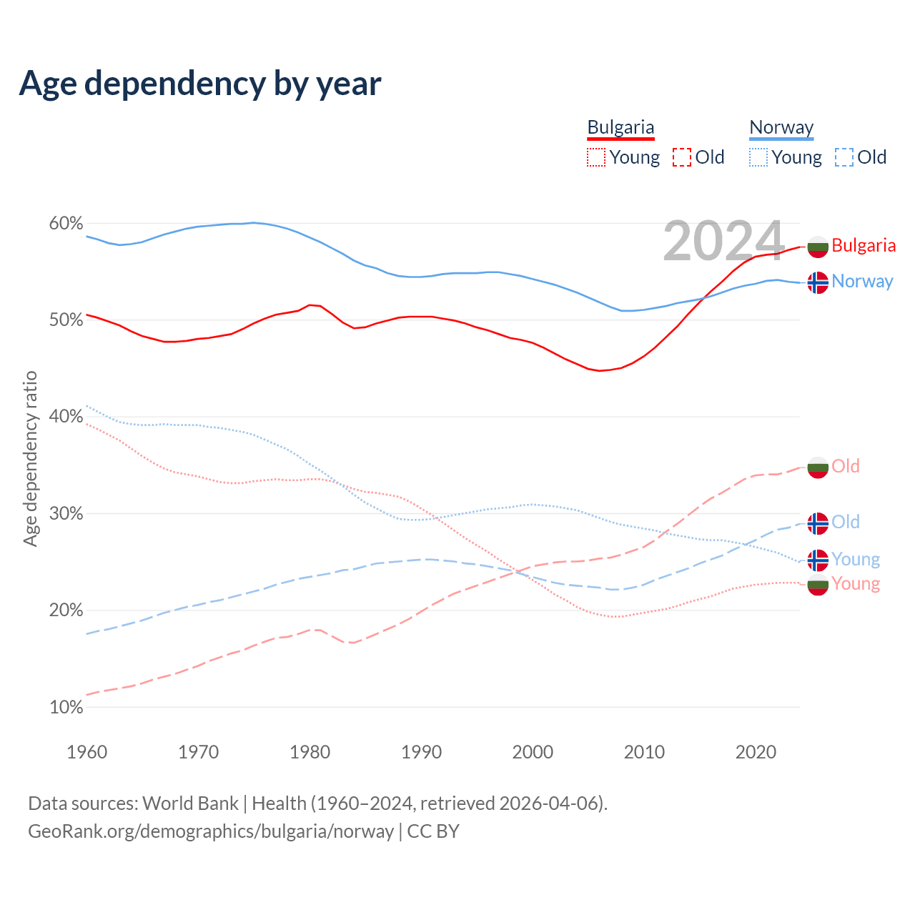 - Bulgaria is ranked 12/196 by median age (oldest to youngest) vs 43/196 for Norway.