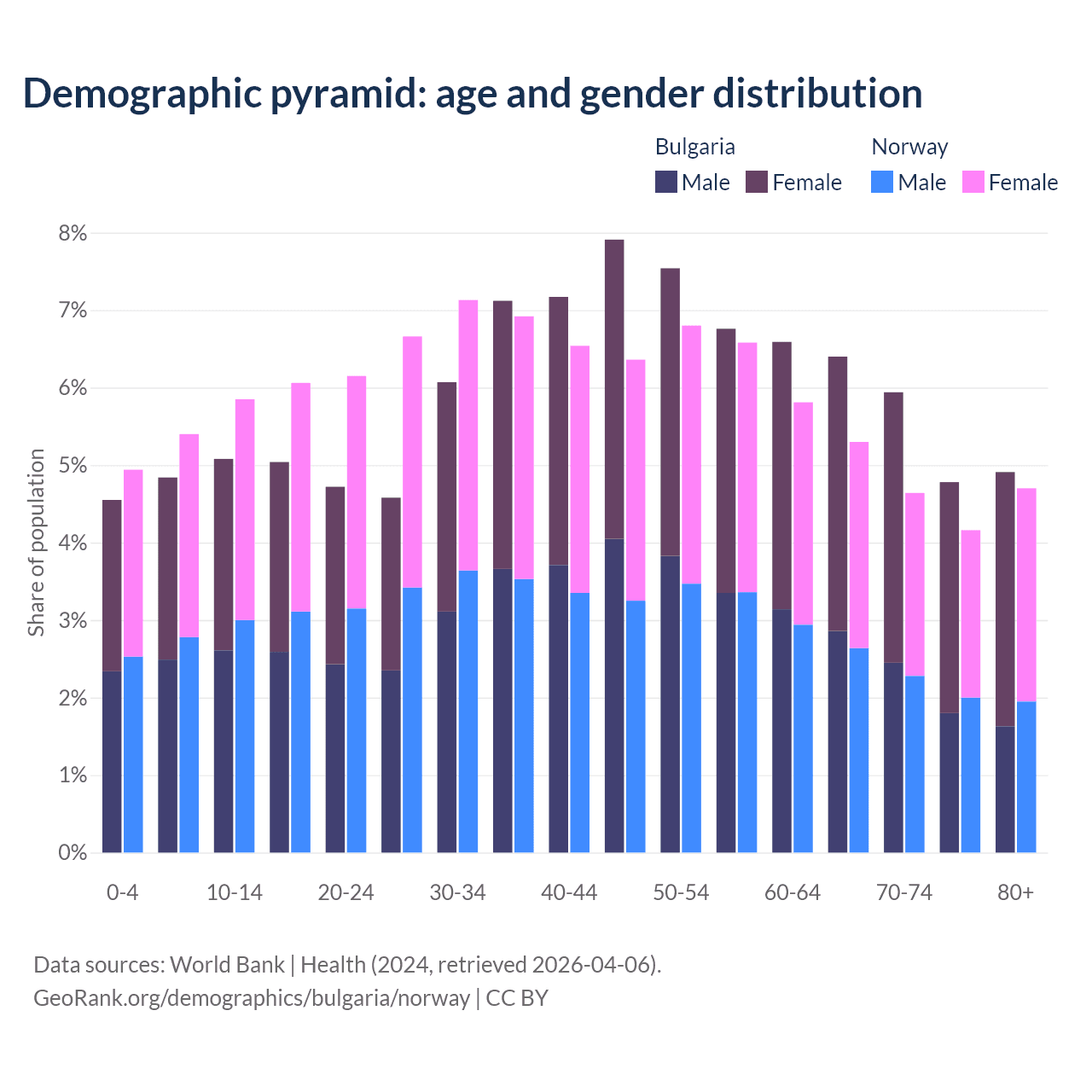 Demographics of Bulgaria compared to Norway: