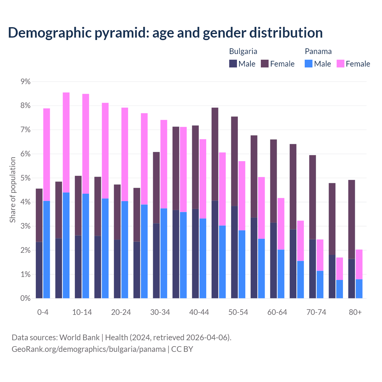 Demographics of Bulgaria compared to Panama: