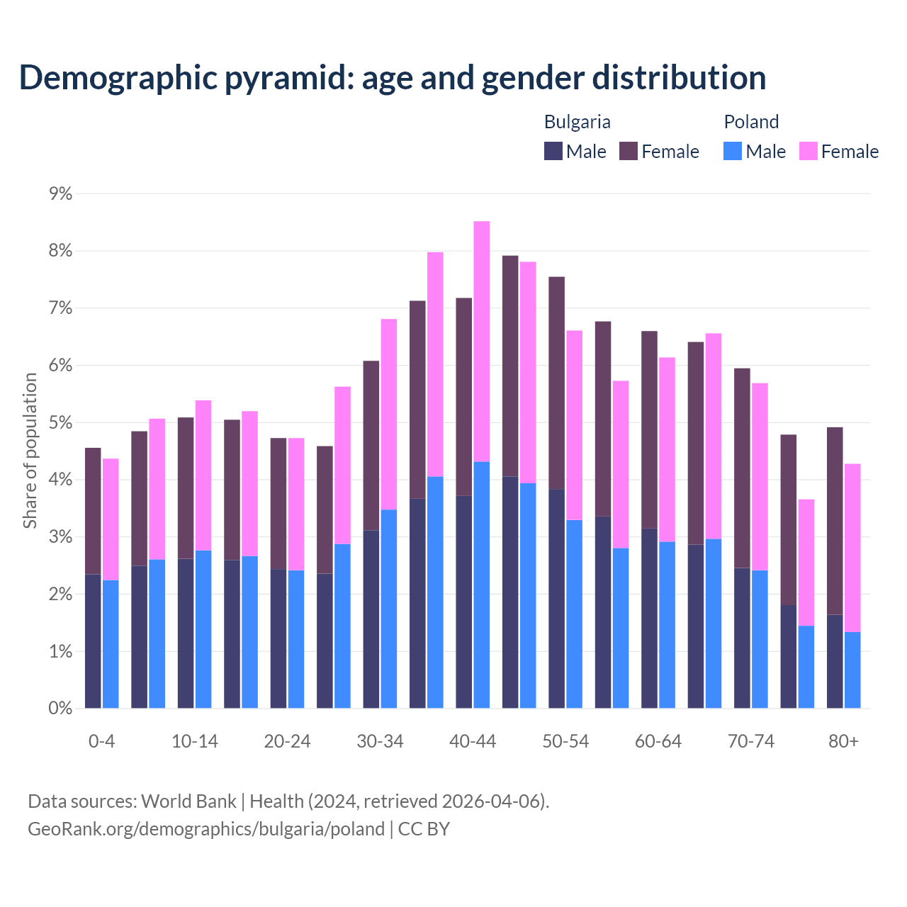 Demographics of Bulgaria compared to Poland: