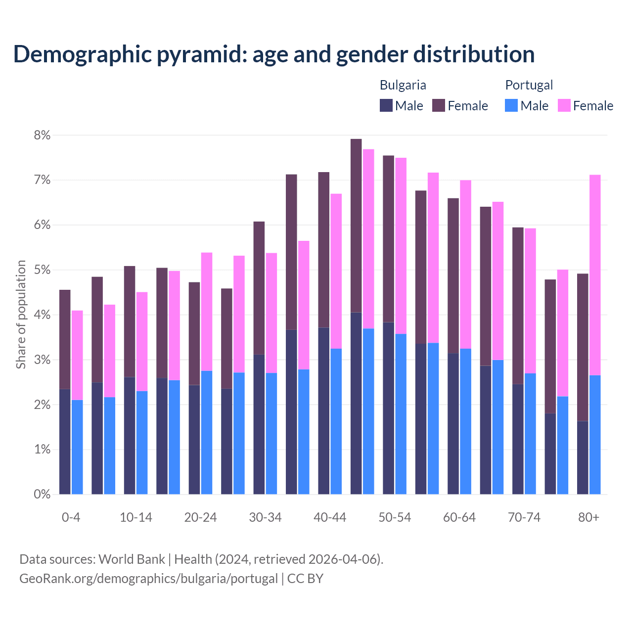 Demographics of Bulgaria compared to Portugal:
