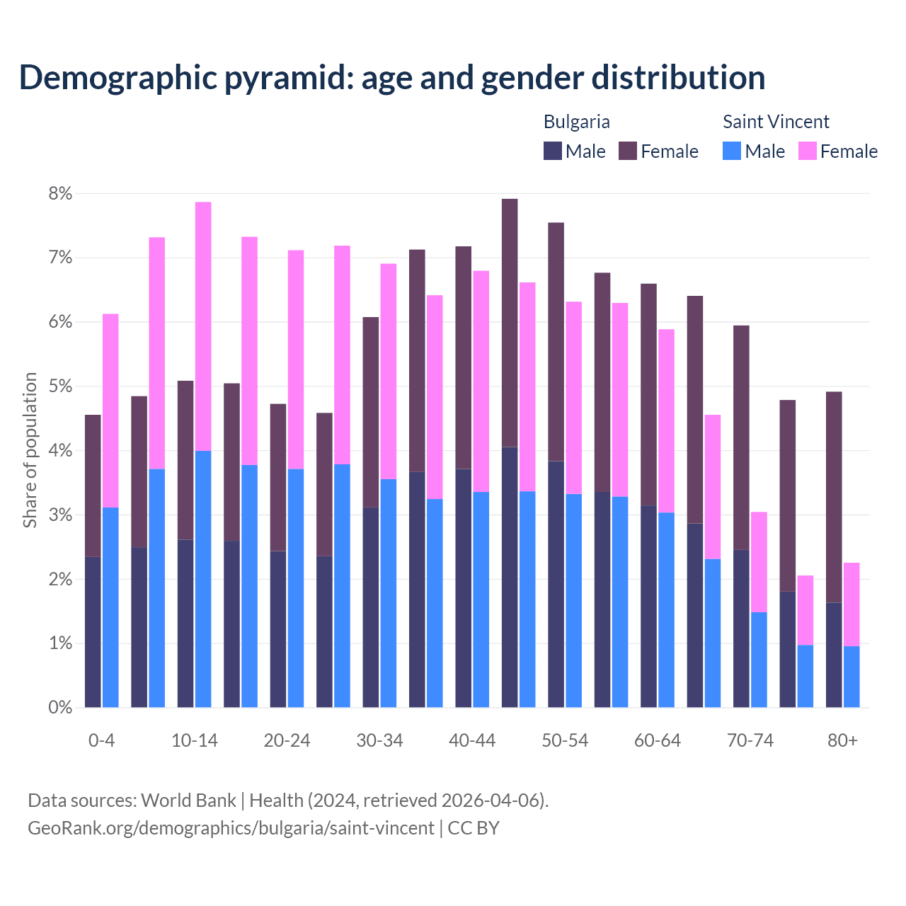 Demographics of Bulgaria compared to Saint Vincent: