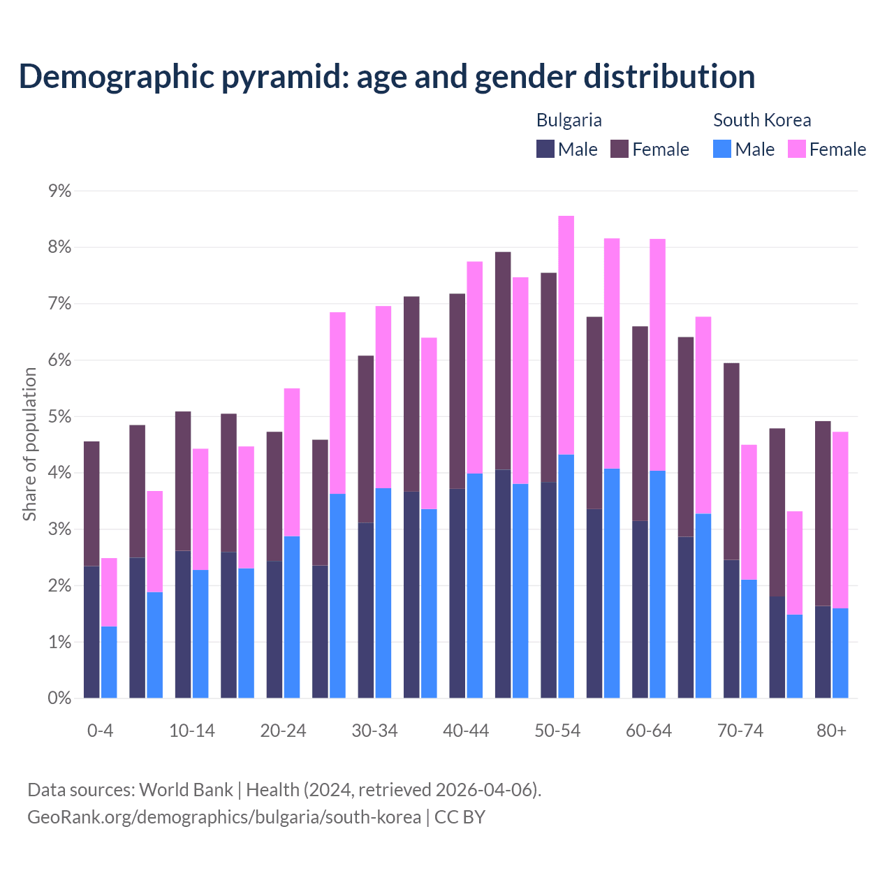 Demographics of Bulgaria compared to South Korea: