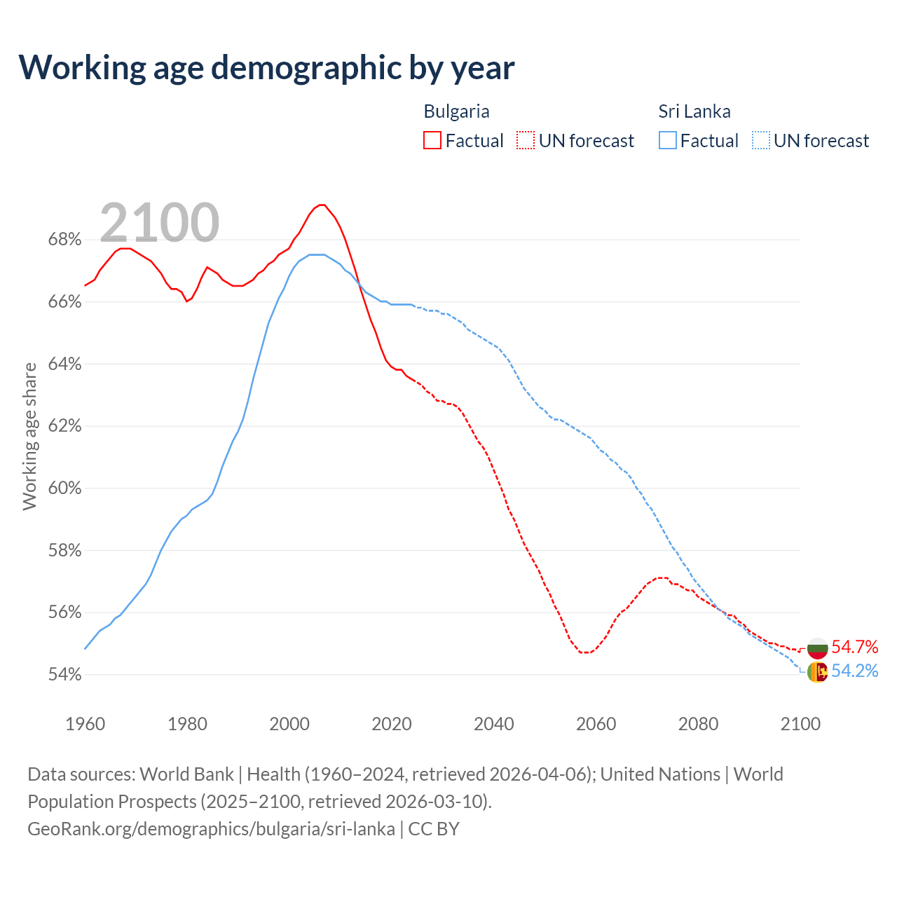 - Bulgaria has 4.04M working age adults (aged 15-64) vs 14.6M in Sri Lanka.