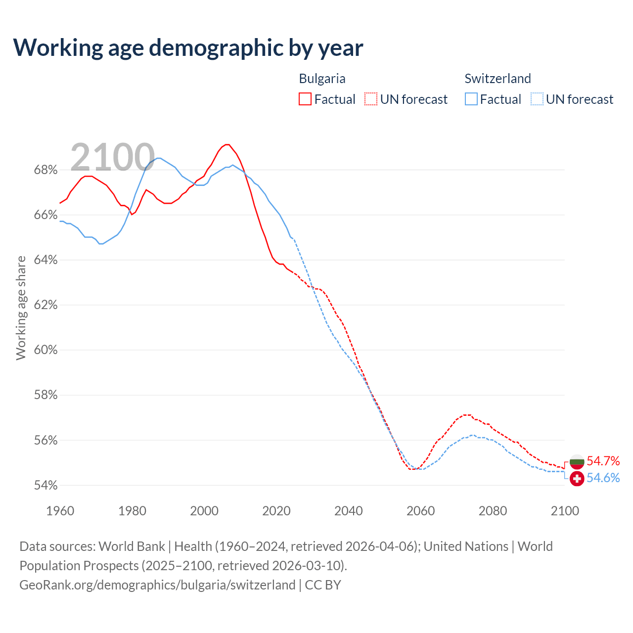 - Bulgaria has 4.04M working age adults (aged 15-64) vs 5.92M in Switzerland.