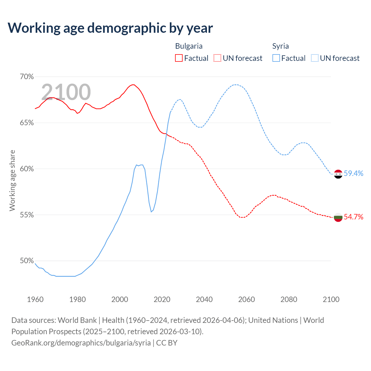 - Bulgaria has 4.04M working age adults (aged 15-64) vs 17.7M in Syria.