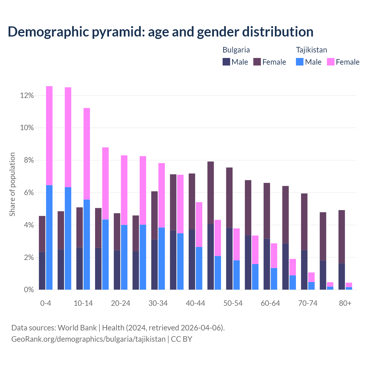 Demographics of Bulgaria compared to Tajikistan: