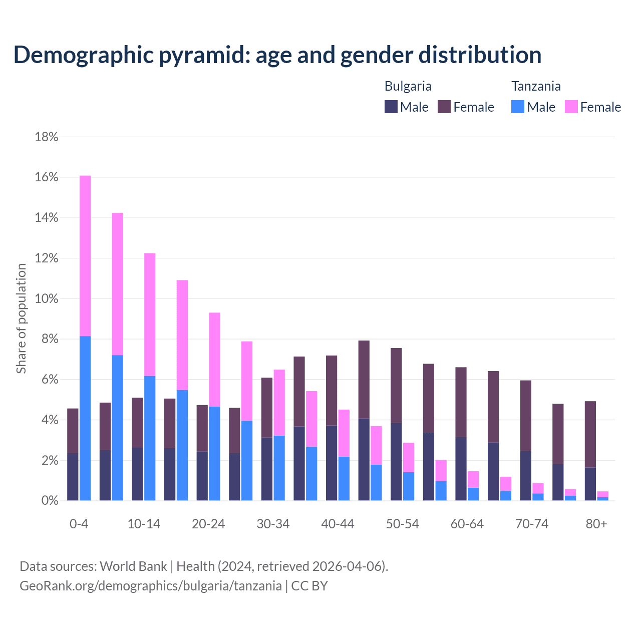 Demographics of Bulgaria compared to Tanzania: