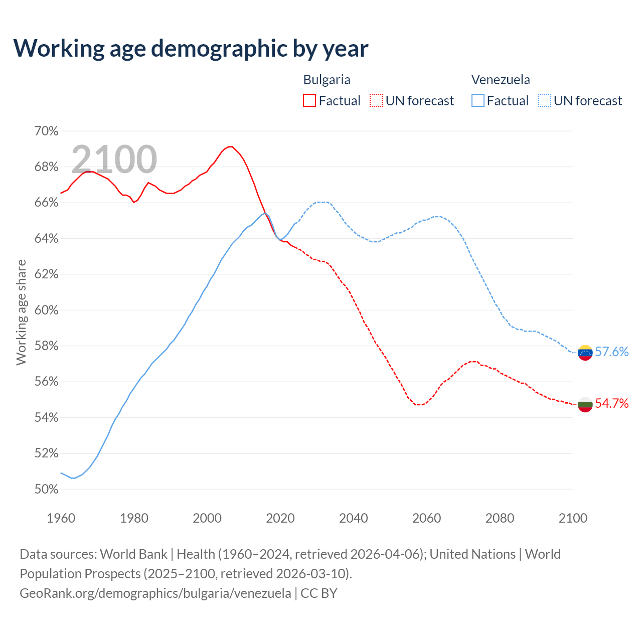 - Bulgaria has 4.04M working age adults (aged 15-64) vs 18.6M in Venezuela.