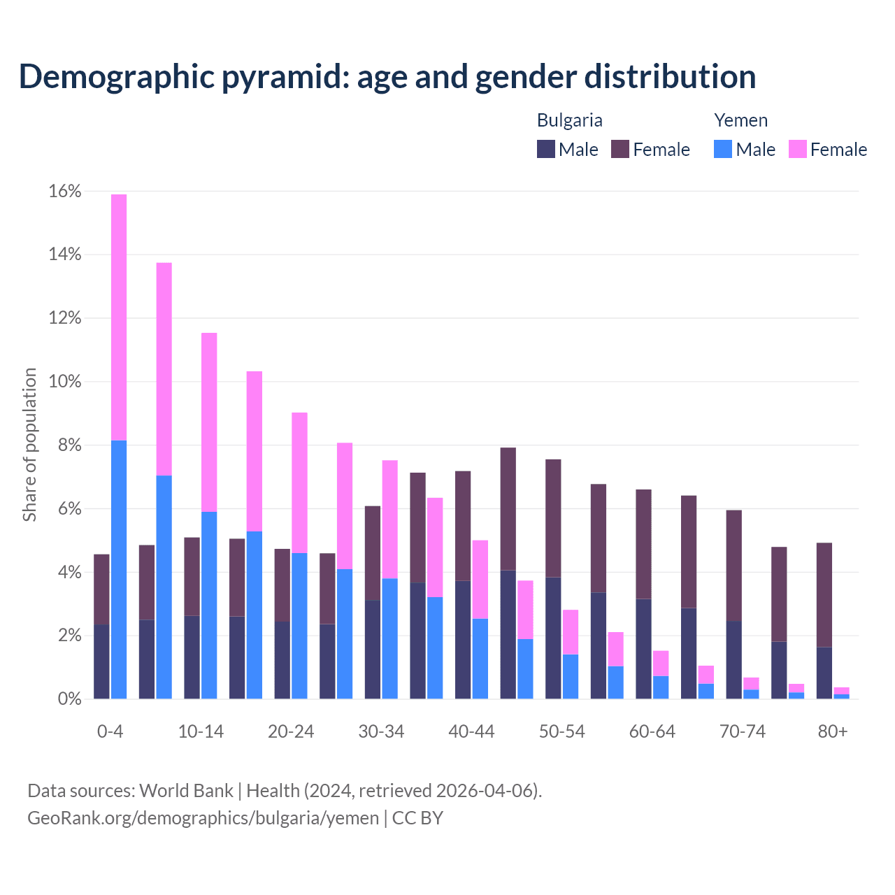 Demographics of Bulgaria compared to Yemen:
