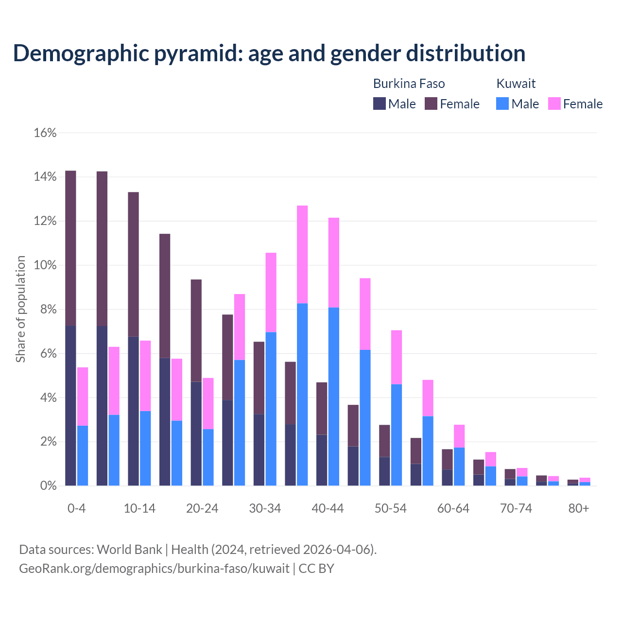Demographics of Burkina Faso compared to Kuwait: