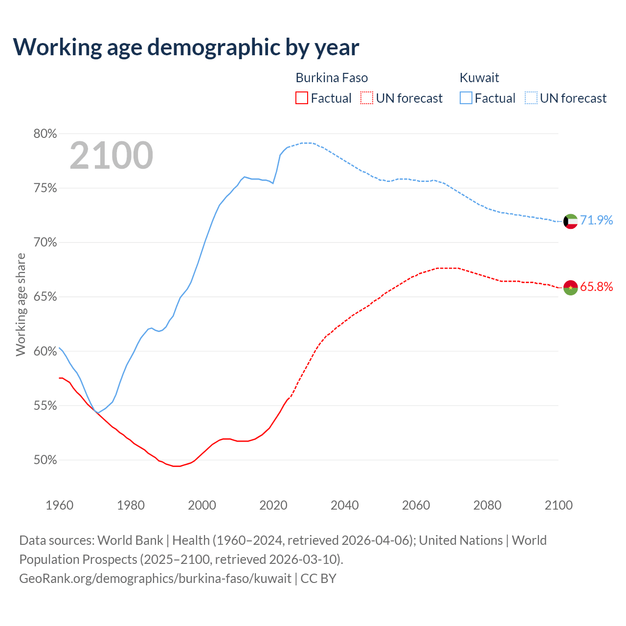 - Burkina Faso has 13.8M working age adults (aged 15-64) vs 4.01M in Kuwait.