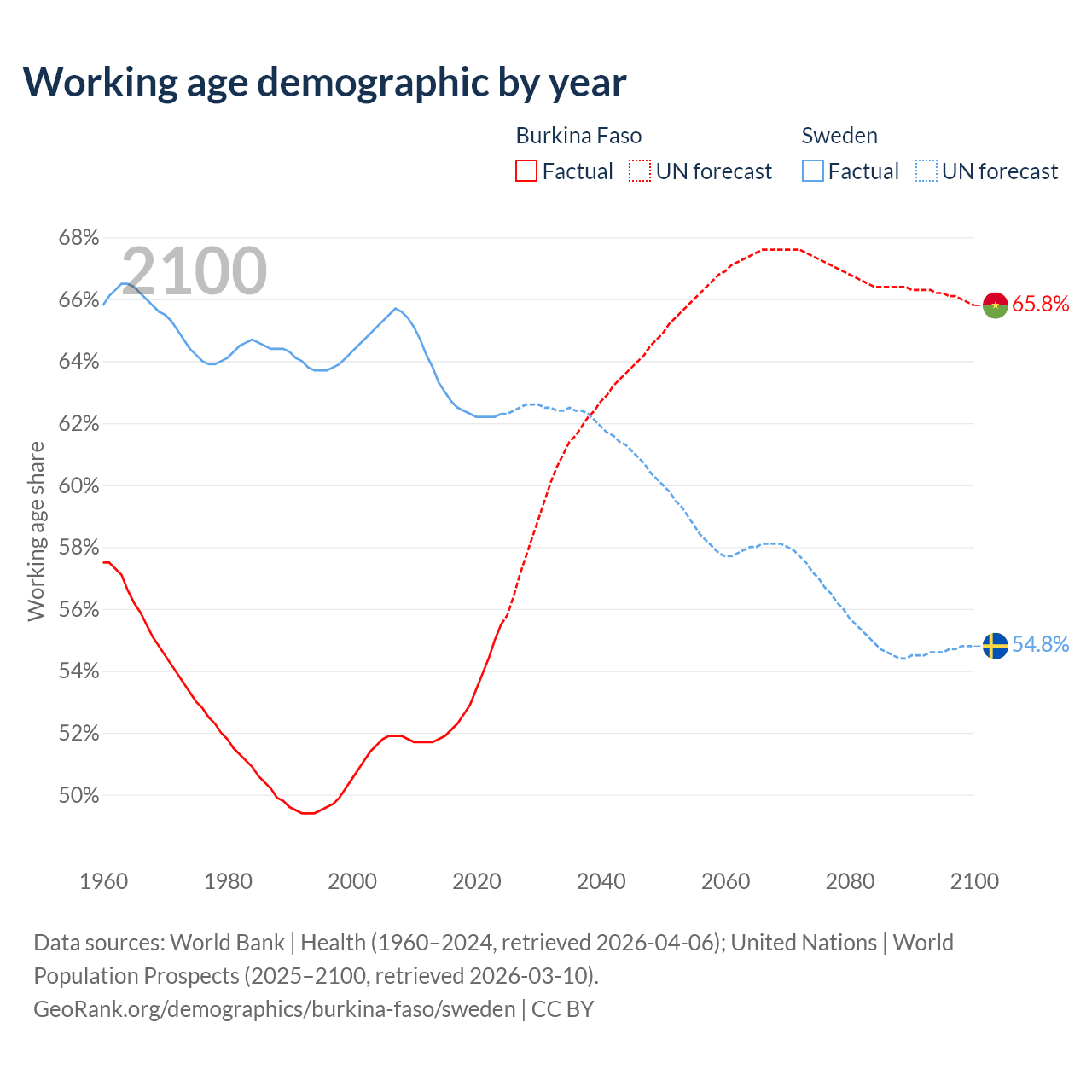 - Burkina Faso has 13.8M working age adults (aged 15-64) vs 6.65M in Sweden.