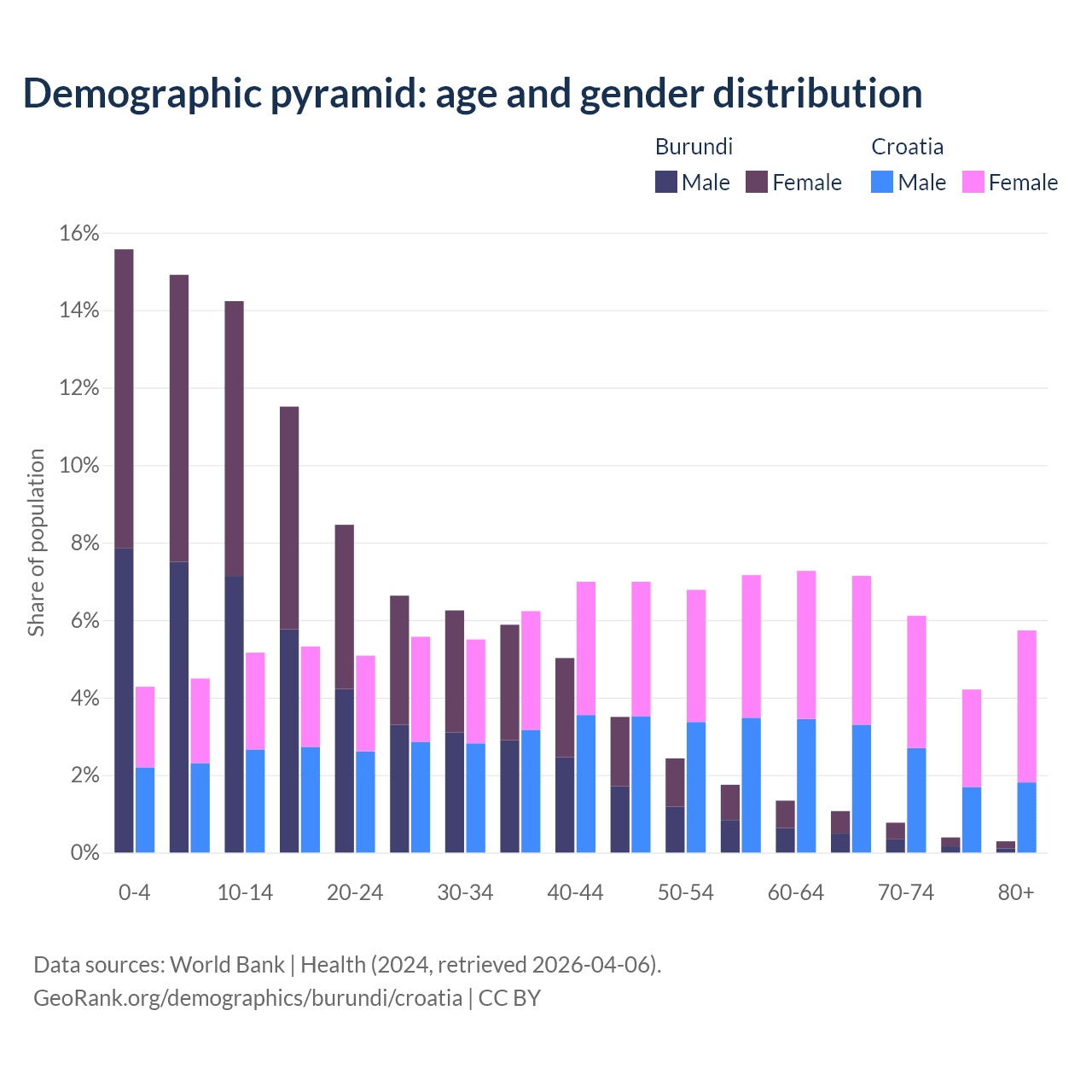 Demographics of Burundi compared to Croatia: