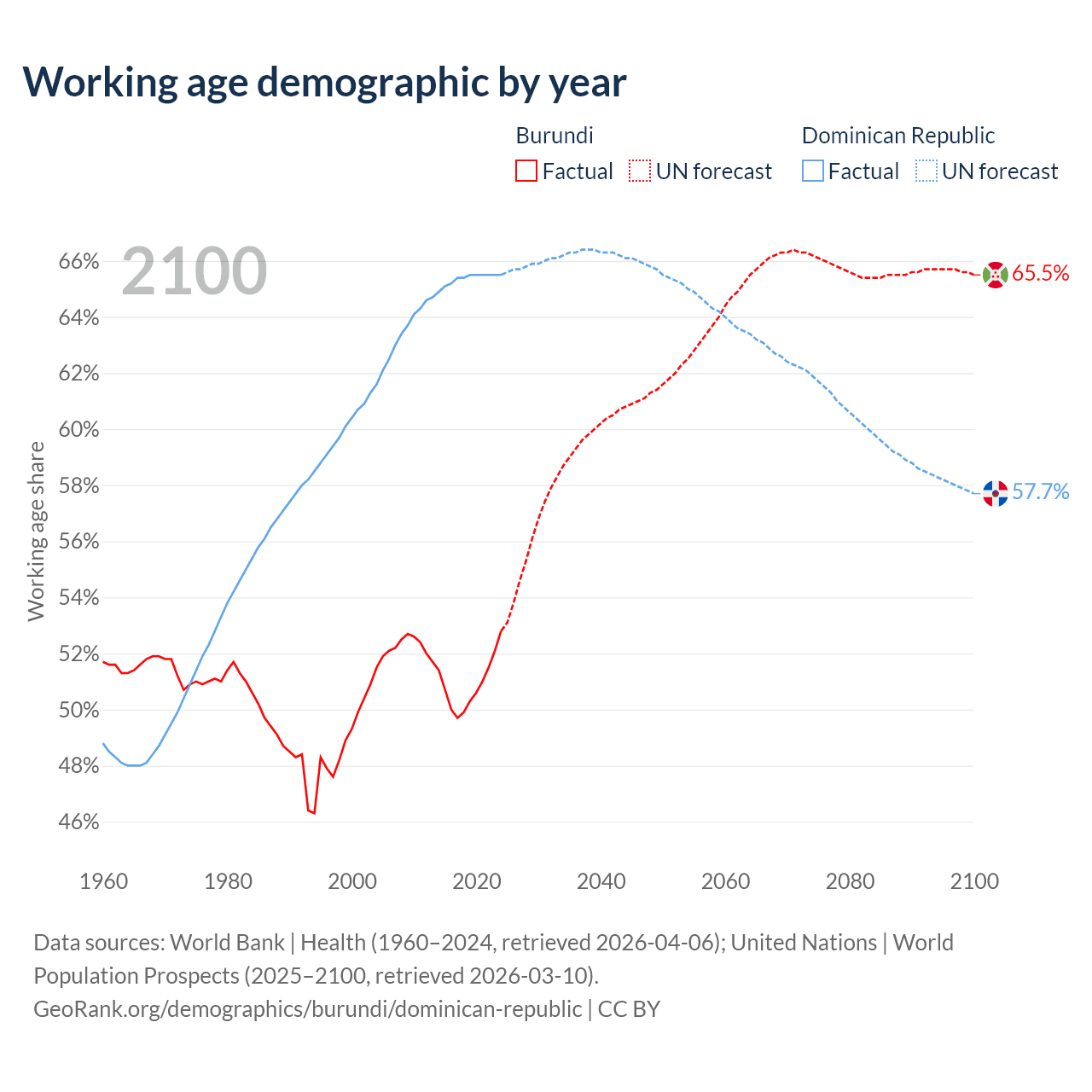 - Burundi has 7.83M working age adults (aged 15-64) vs 7.63M in the Dominican Republic.