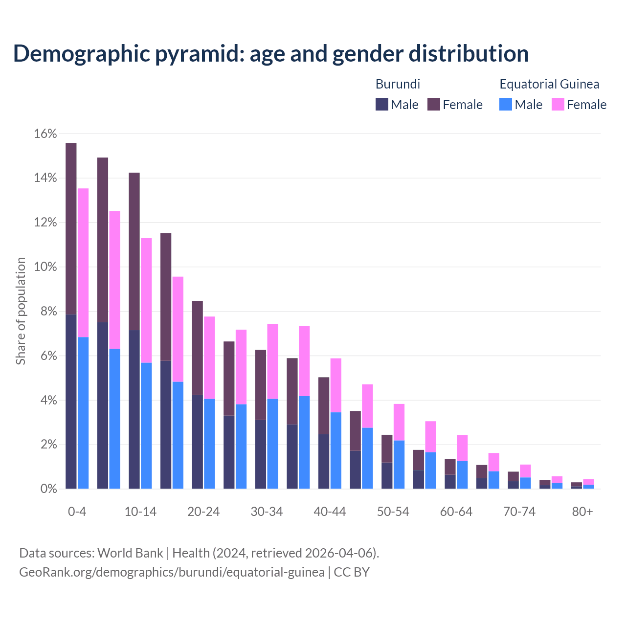 Demographics of Burundi compared to Equatorial Guinea: