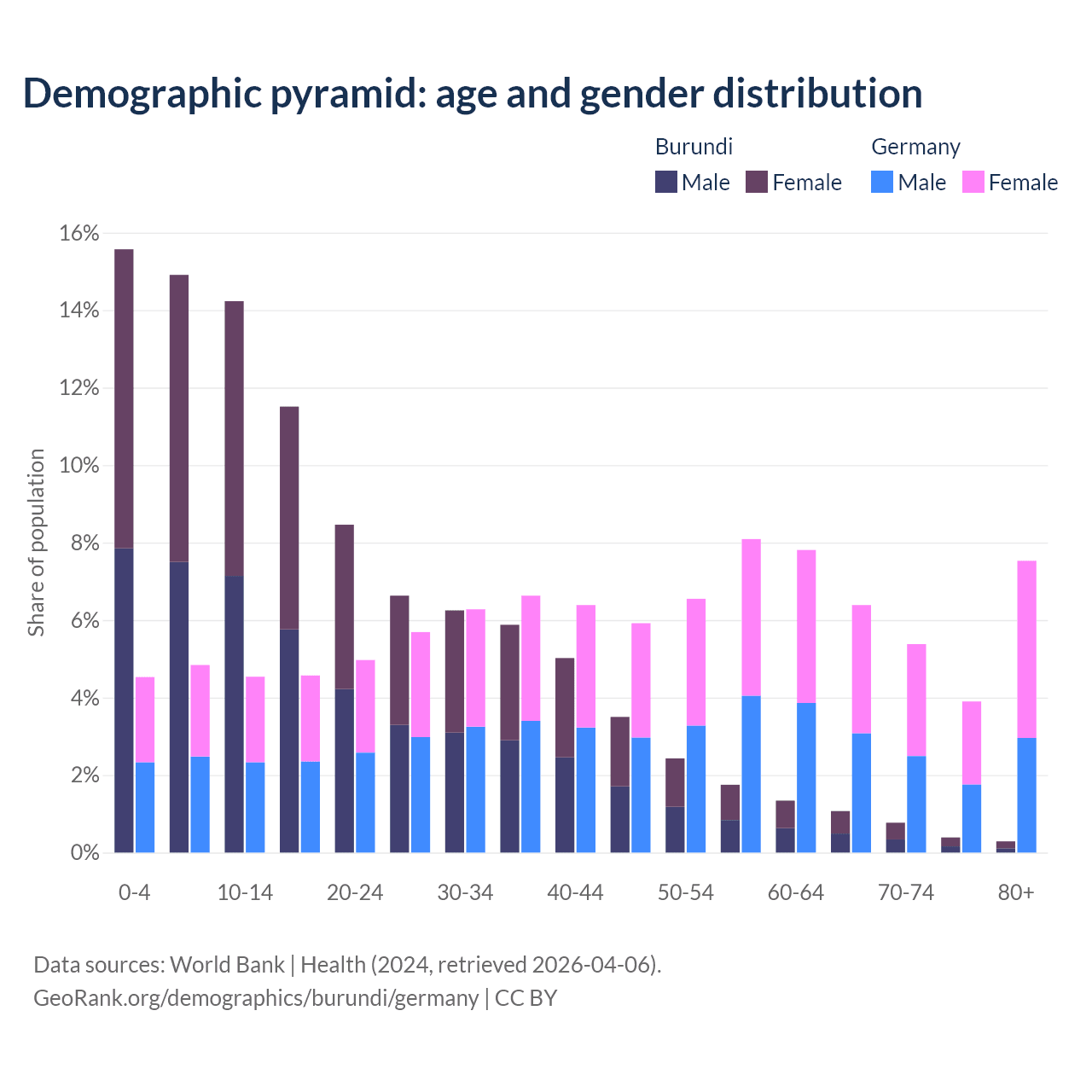 Demographics of Burundi compared to Germany: