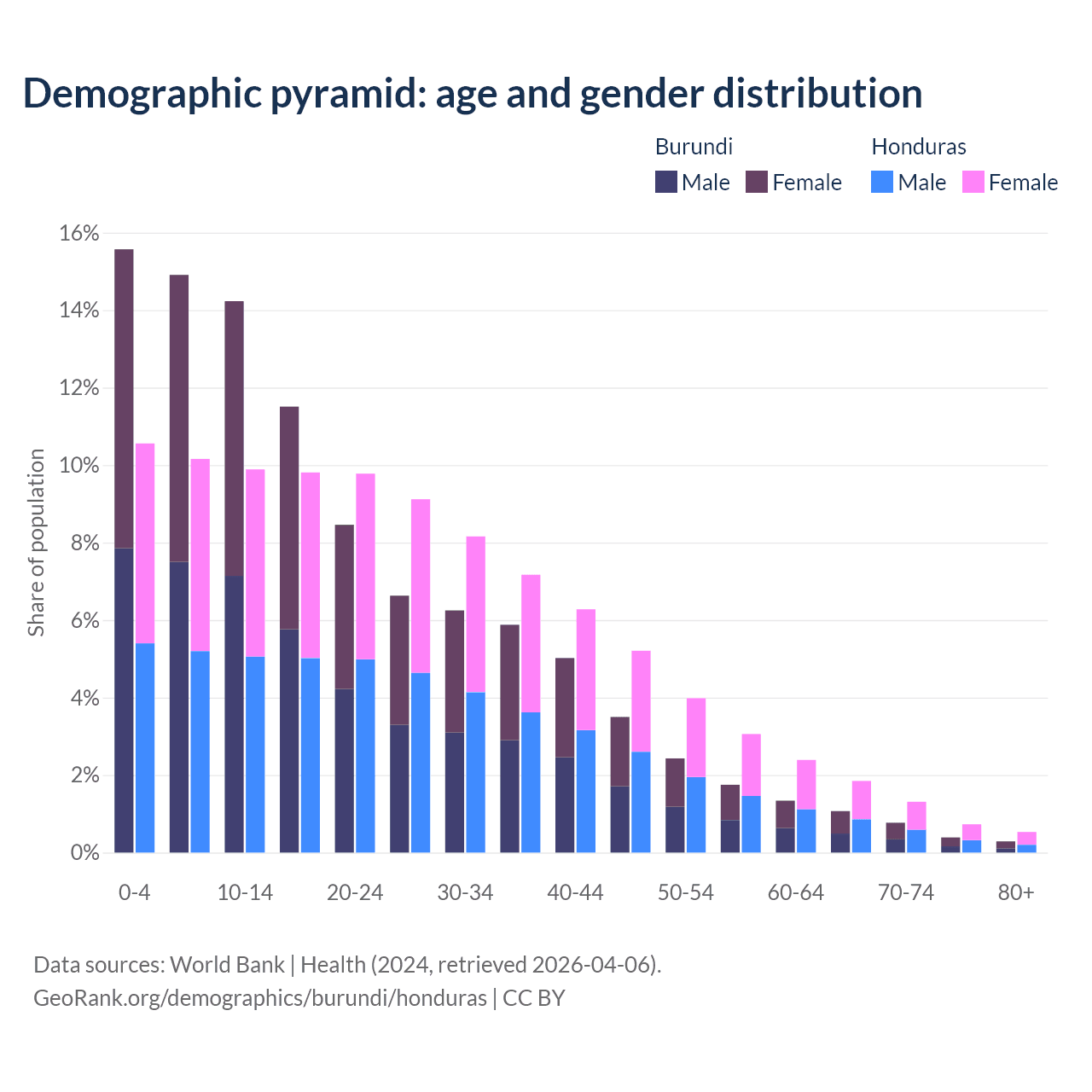 Demographics of Burundi compared to Honduras: