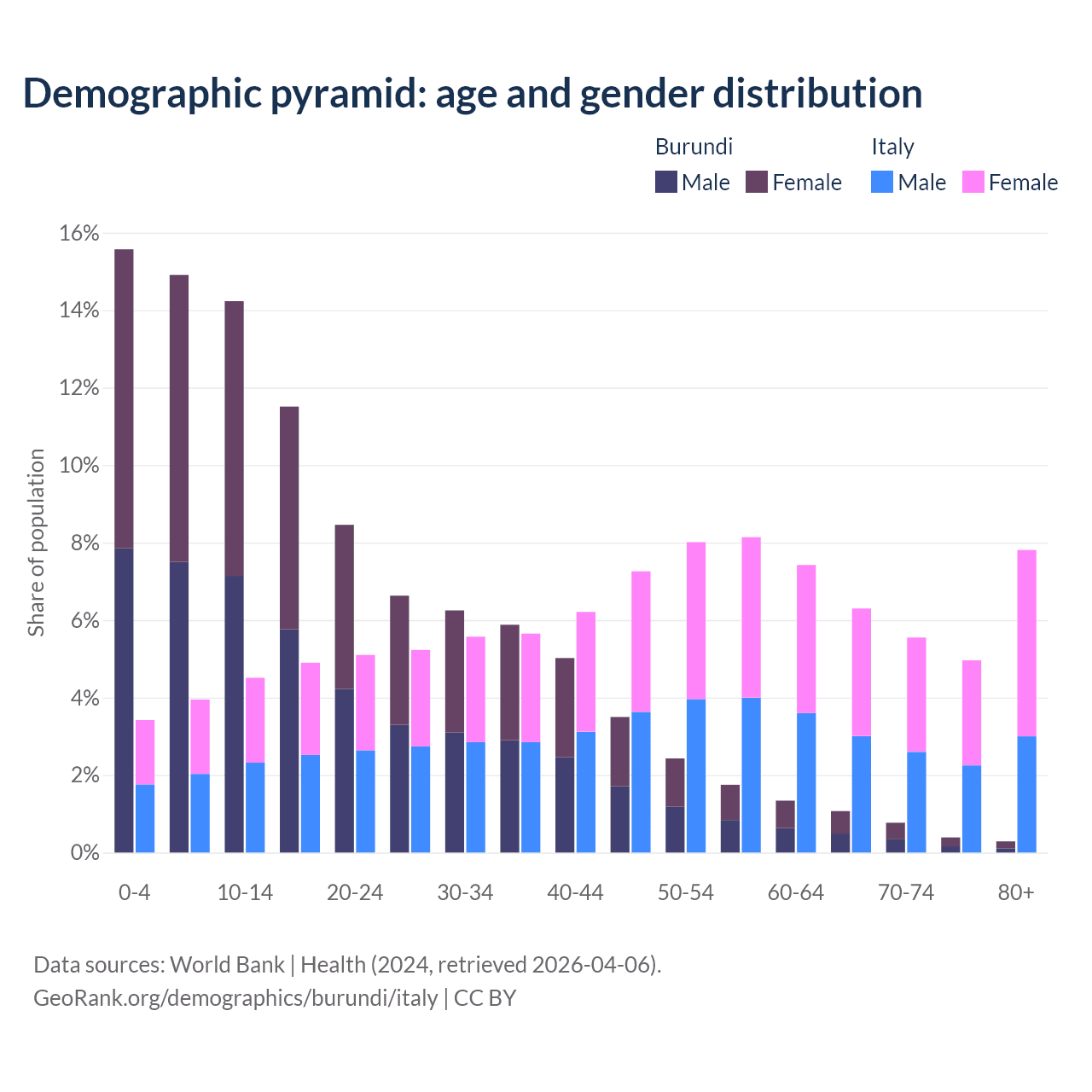 Demographics of Burundi compared to Italy: