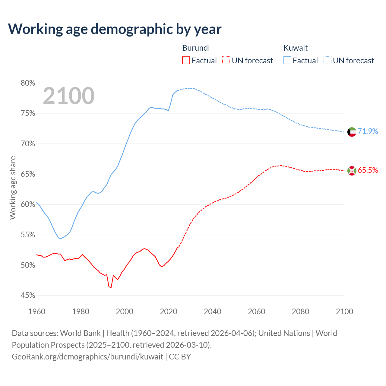- Burundi has 7.83M working age adults (aged 15-64) vs 4.01M in Kuwait.