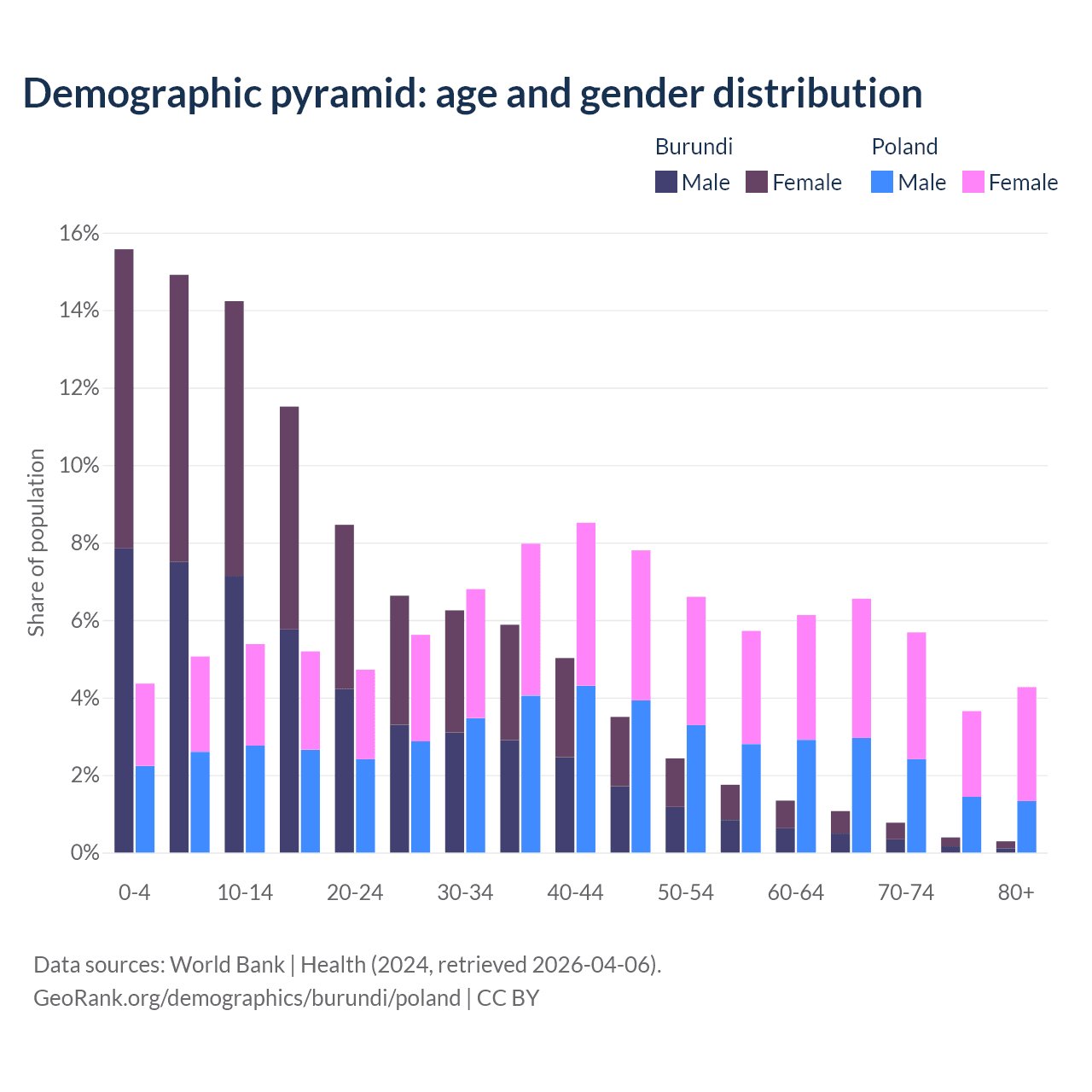 Demographics of Burundi compared to Poland: