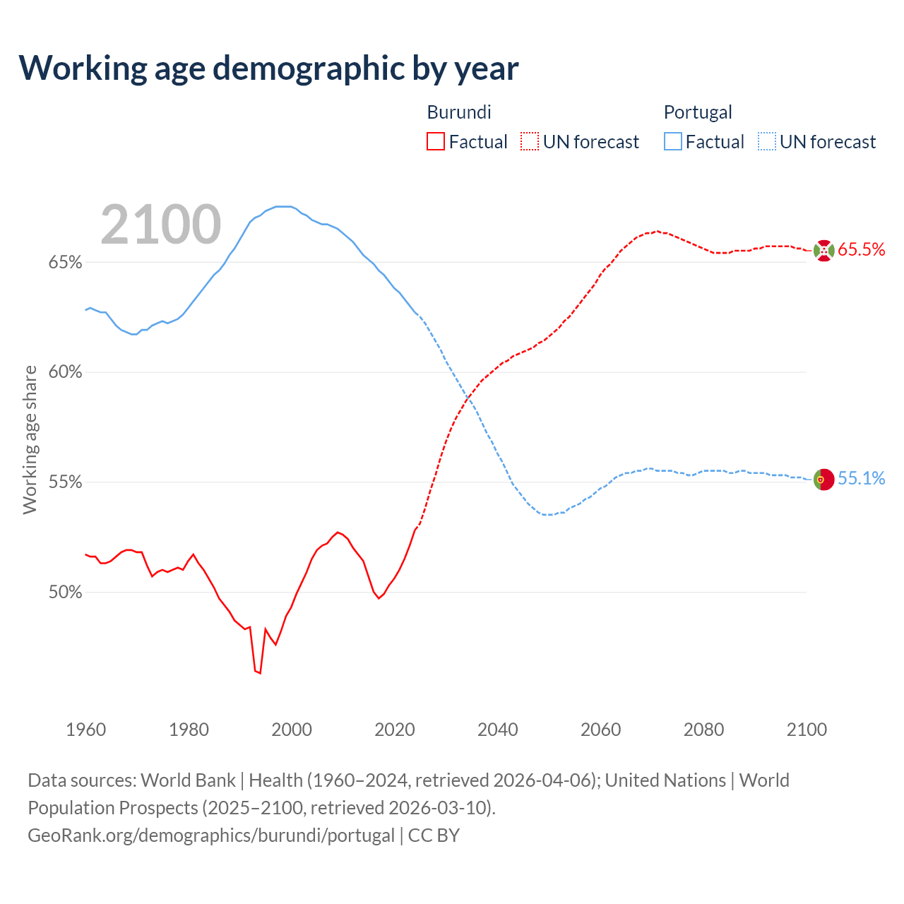 - Burundi has 7.83M working age adults (aged 15-64) vs 6.68M in Portugal.