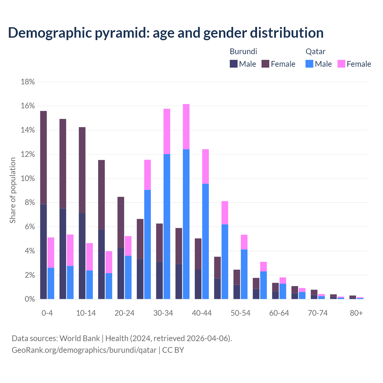 Demographics of Burundi compared to Qatar: